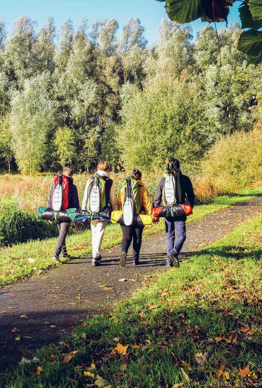 GESTELD WORDEN WAT IS PACKRAFTEN PLEKJES OM EVEN HALT TE HOUDEN PACKRAFT HUREN SPELREGELS & VEILIGHEID LEGENDE WANDEL TOCHT 8 KM PACK RAFTTOCHT 4 KM PEDDELS Peddelervaring is niet vereist, peddelen op vlak water is wel iets zwaarder dan stroomafwaarts. PACKRAFT Een packraft of draagbare boot is een stabieler bootje dan een kano of
