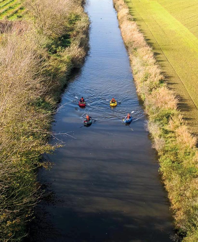 bijrivier van de Leie waarbij je peddelt op vlak water. Eenmaal in Dentergem, stap je gemakkelijk uit de boot. Nog een kort wandelingetje en je bent terug bij de Baliekouter.