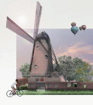 Authentieke staakmolen krijgt opnieuw wieken en wordt weer maalvaardig gemaakt. Het bijhorende bivakhuis wordt een open picknickzone.