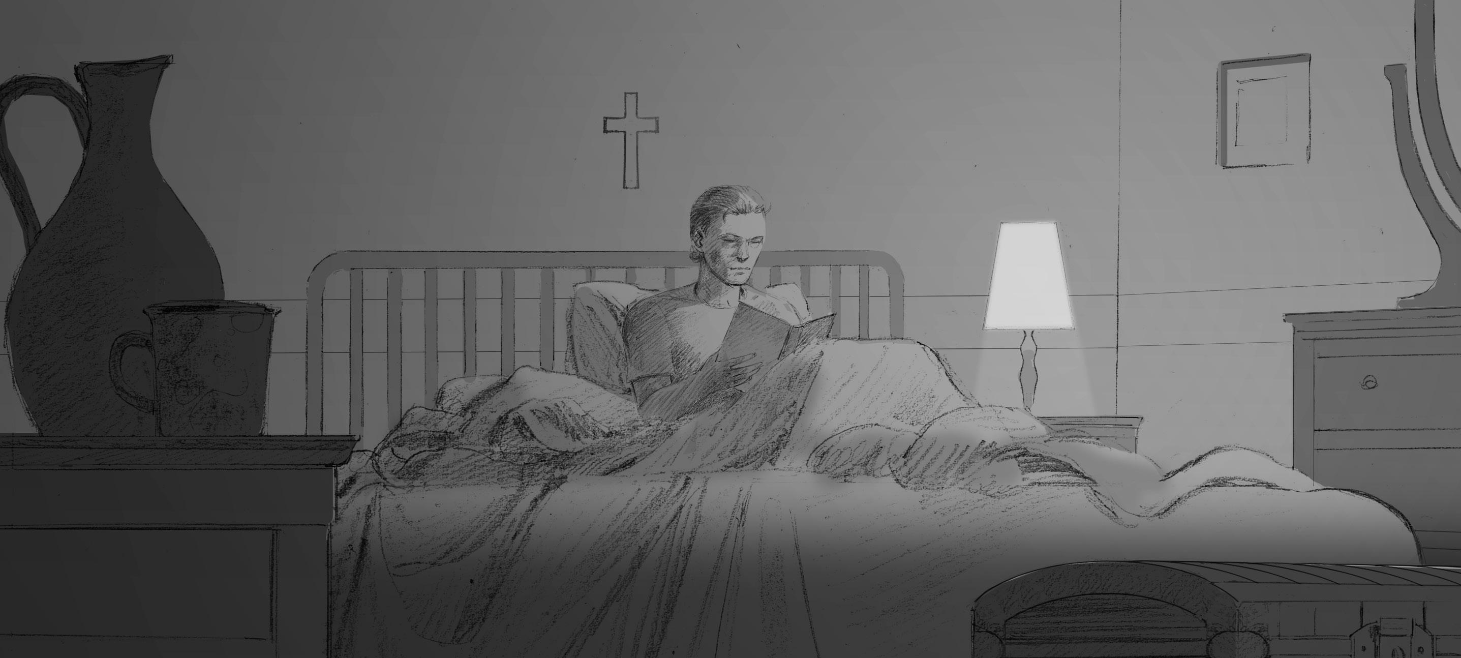 In the late evening, the Cardinal chose a book from the library to read before bed, as was his habit.