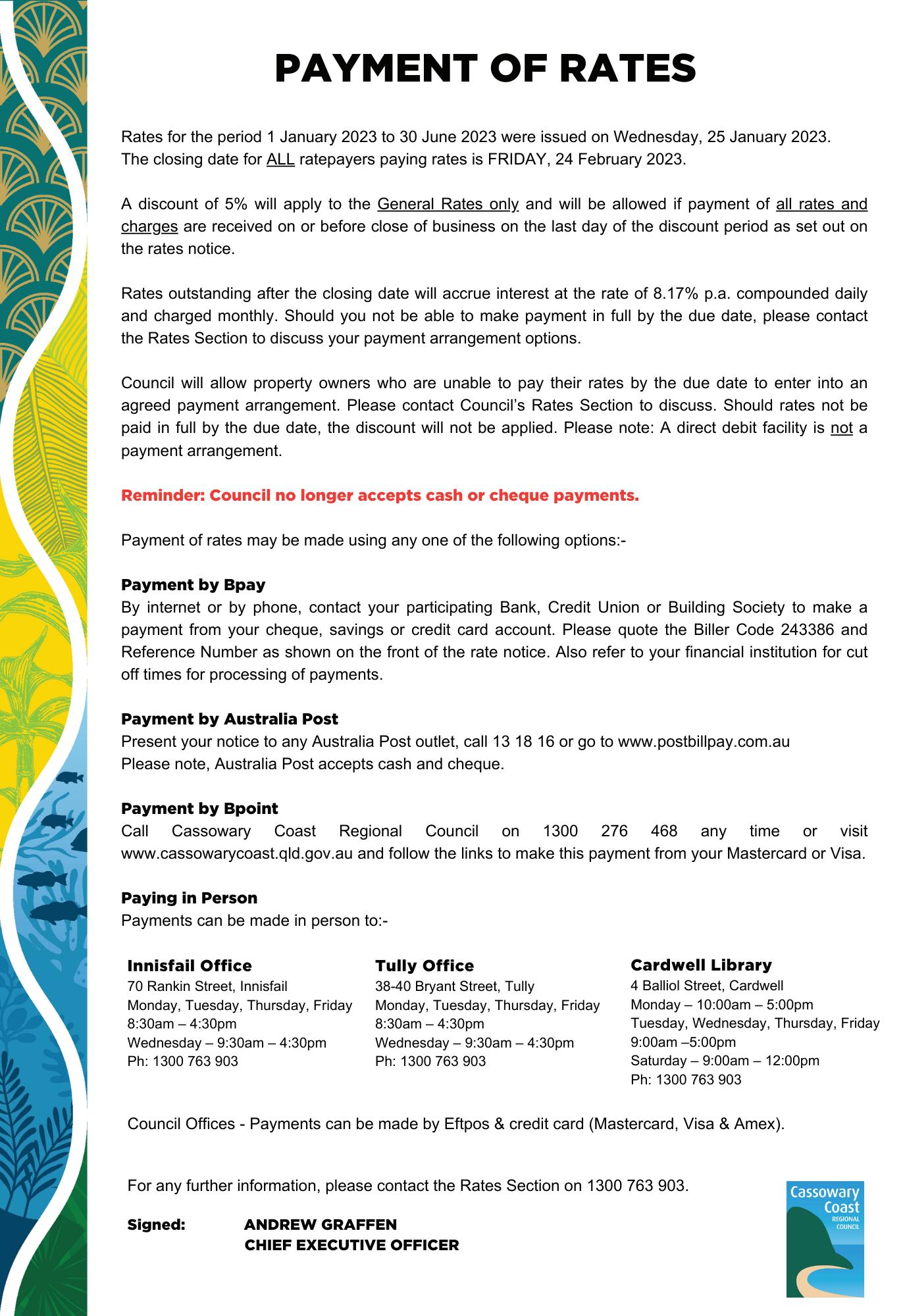 "Many Tully residents have expressed their concern to me as a lot of the elderly don't have access to online banking," Mr Knuth said.
