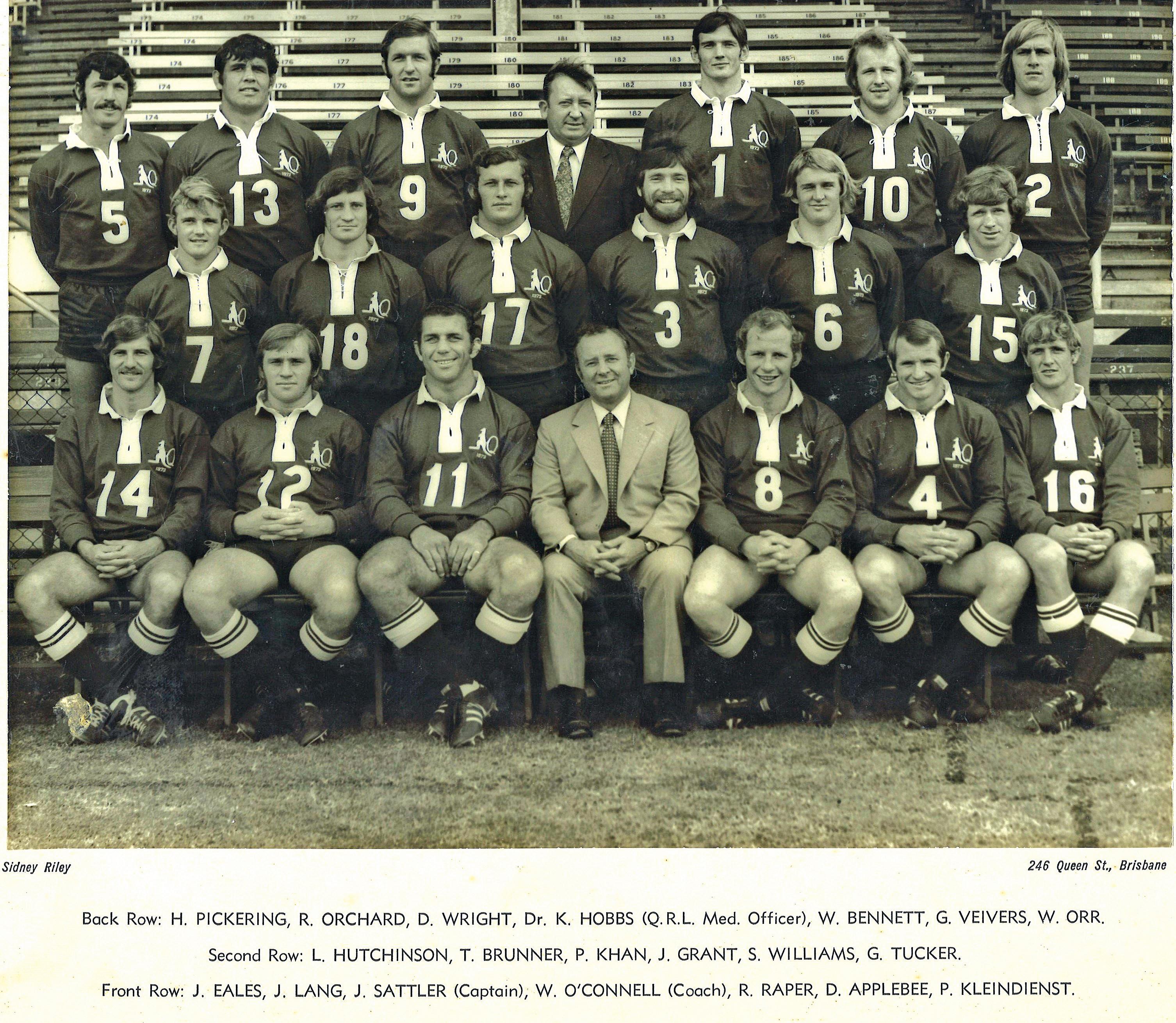 The Qld Captain John Sattler (No 11) was obviously already famous by the time he wore the maroon in 1973. After retiring as a player in 1976, he became