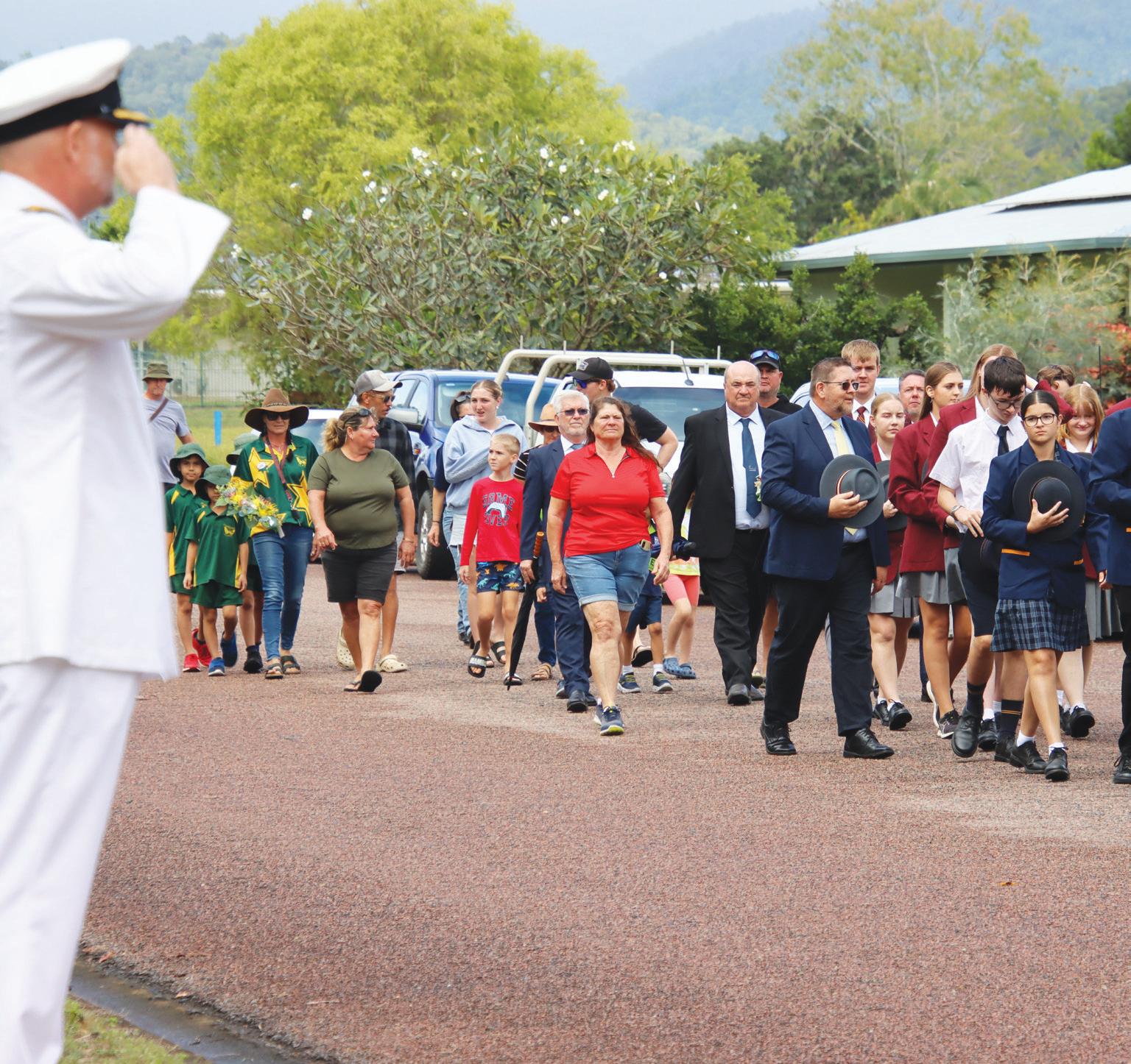 The parade stepped off at 10.30am. Official Salute was taken by Commander Andrew Thorpe, CO HMAS Cairns. Welcome by Master of Ceremony Chaplain Elizabeth Bolton RAN. “Ladies and Gentlemen, I welcome you as we gather at this special site to remember all those who have served and died for our Country at the 1942 Battle of the Coral Sea.” Special Guests were Member for Mulgrave Mr Terry James MP, representing Queensland Premier Mr David Crisafulli MP, Member for Hinchinbrook Mr Nick Dametto MP, Cassowary Coast Regional Councillors Trudy Schui, Chris Littlemore. Hinchinbrook Shire Council, Mayor Raymond Jayo. Other attendees were members of the public, students from Ingham State High, Gilroy Santa Maria College, primary school students accompanied by parents and teachers is always a joy to have them participate in a historical commemorative occasion.