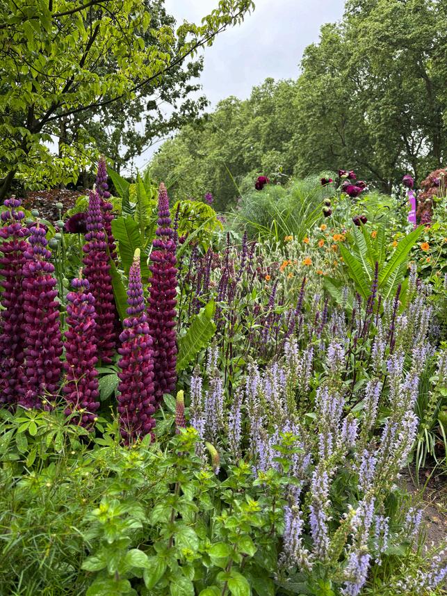 It's very peaceful at Chelsea early in the morning Officials and workers in yellow vests; a few exhibitors tweaking and tidying; and a scattering of early visitors Having said hello to Paul and his amazing WRAG Scheme trainee Phil Rankin, I wandered off to look at the show gardens. A benefit of being a volunteer at Chelsea is early entry into the show grounds so you get a great view of all the gardens and exhibits without the crowds I loved Monty Don’s dogfriendly garden – particularly the colours – gorgeous deep burgundy lupins and poppies, studded with orange geums and soft purple flowers The SongBird Survival Garden was beautiful and wild, incorporating crucial elements for birds – water, food and shelter.