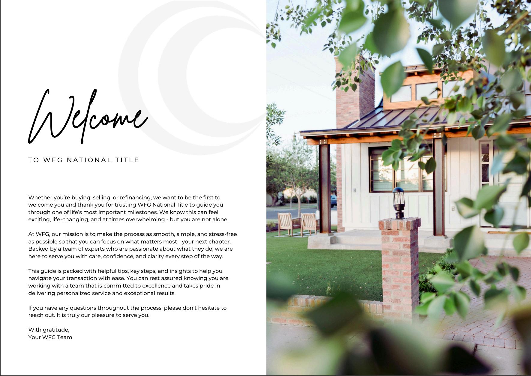 At WFG, we understand that selling a home can be a journey filled with uncertainties and complexities. It's more than just a transaction; it's a significant life event. That's why we ' ve tailored our resources to ensure that your client’s home-selling experience is as smooth and stress-free as possible.