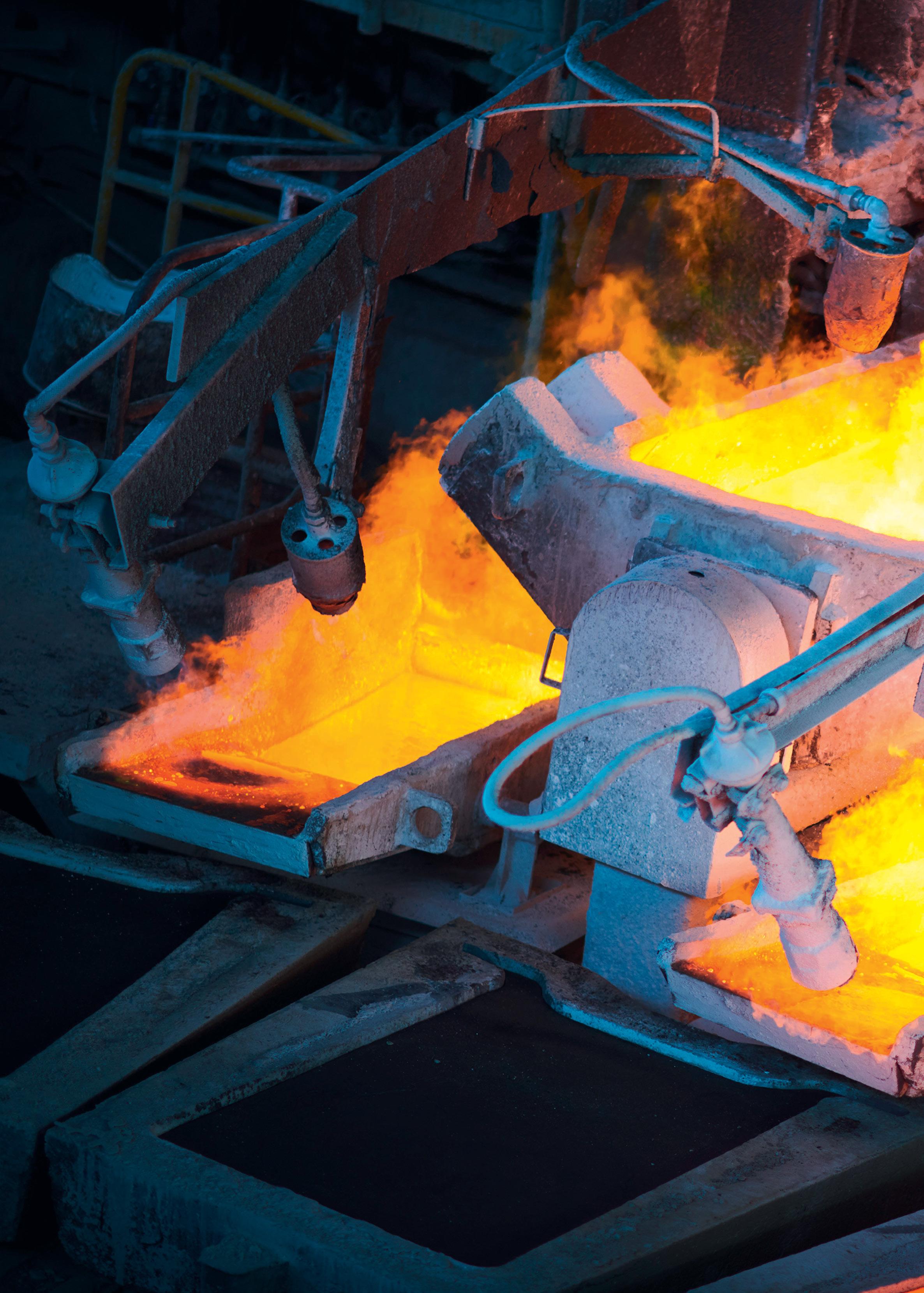 Kupfer. In Altonorte in Chile wird von Glencore Kupfer im Gießradverfahren produziert.
