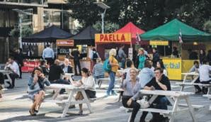 This south-facing promenade to the right of the silver South Quay Bridge that links the estate with the Isle Of Dogs with its shady colonnade has long been a haven for smokers and walkers sheltering from the rain, but not much else.