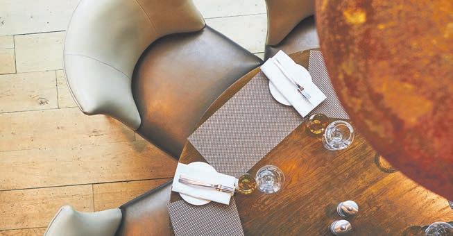 The Crossrail Place restaurant o ers diners minimal, elegant design as well as a private dining or events space decorated with genuine silk kimonos.