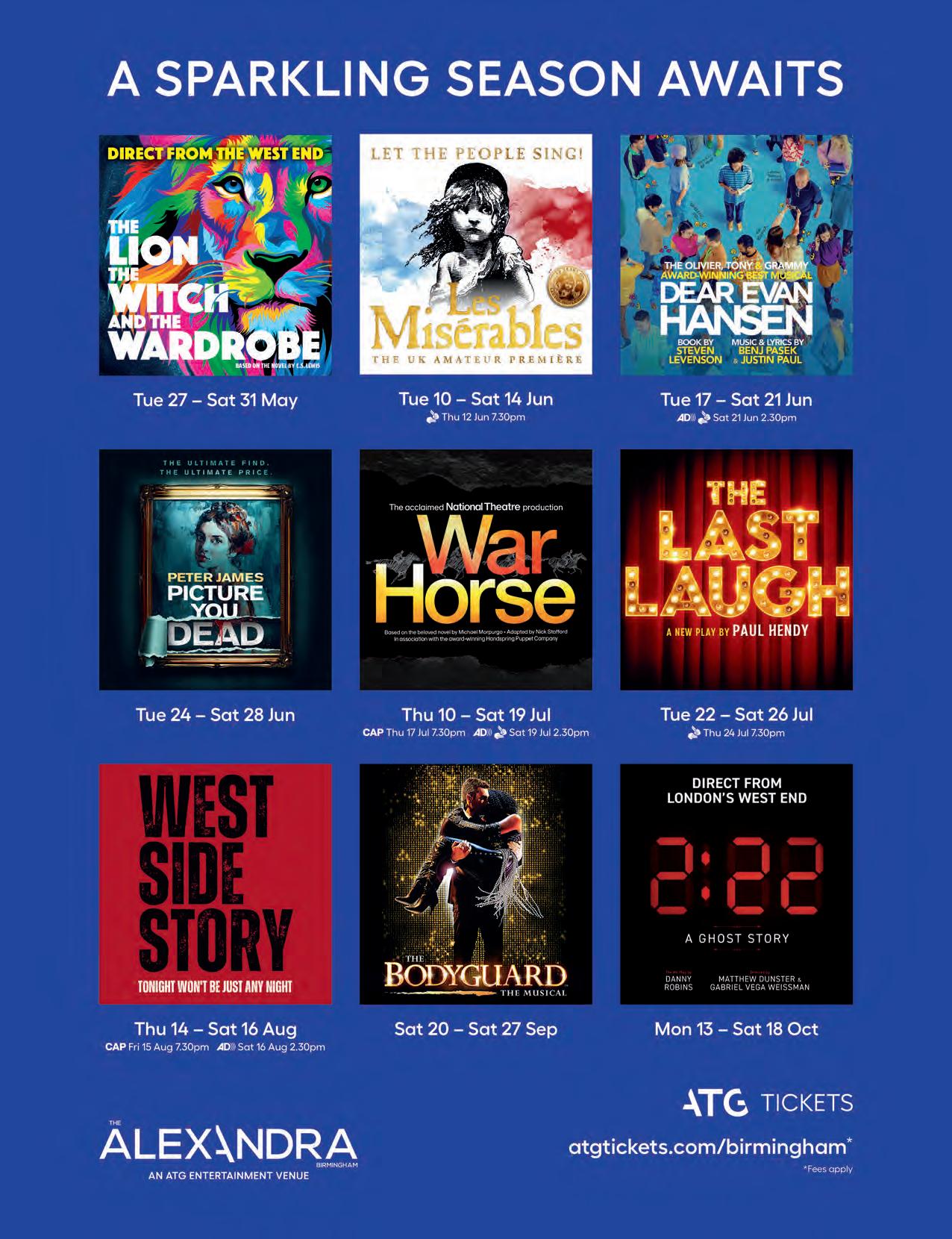 production shows at the city-centre venue from Tuesday 7 to Saturday 11 October. For more information and tickets, head to the website at atgtickets.com/venues/thealexandra-theatre-birmingham