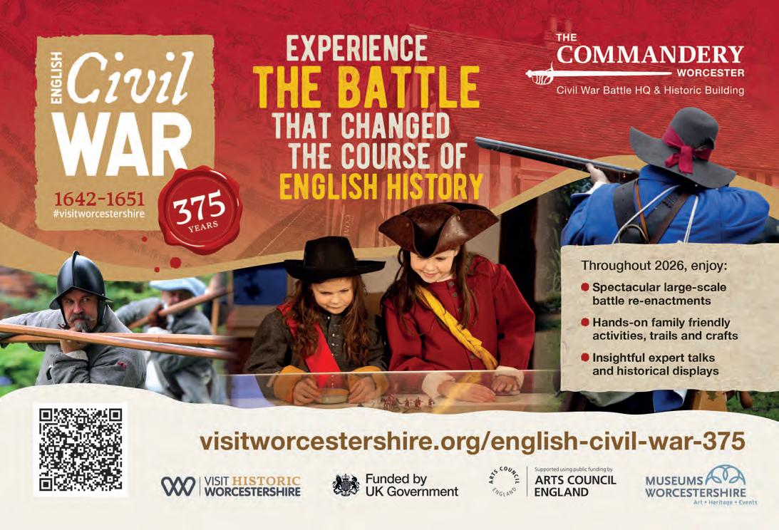 county played a decisive role in the struggle between monarchy and parliament, and Worcester’s place in that journey is powerful, profound and should be globally recognised. Civil War 375 gives us the opportunity to tell this story with pride, to attract new audiences, to drive heritage tourism, and to showcase the incredible assets, businesses and experiences we have across the county.” A full list of related events taking place across Worcestershire can be accessed via the website at visitworcestershire.org