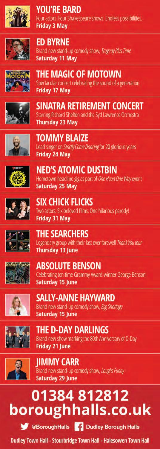 Editorial: Lauren Foster lauren@whatsonlive.co.uk 01743 281707 : Brian O’Faolain brian@whatsonlive.co.uk 01743 281701 : Abi Whitehouse abi@whatsonlive.co.uk : Jessica Clixby jessica@whatsonlive.co.uk Subscriptions: subscriptions@whatsonlive.co.uk 01743 281714