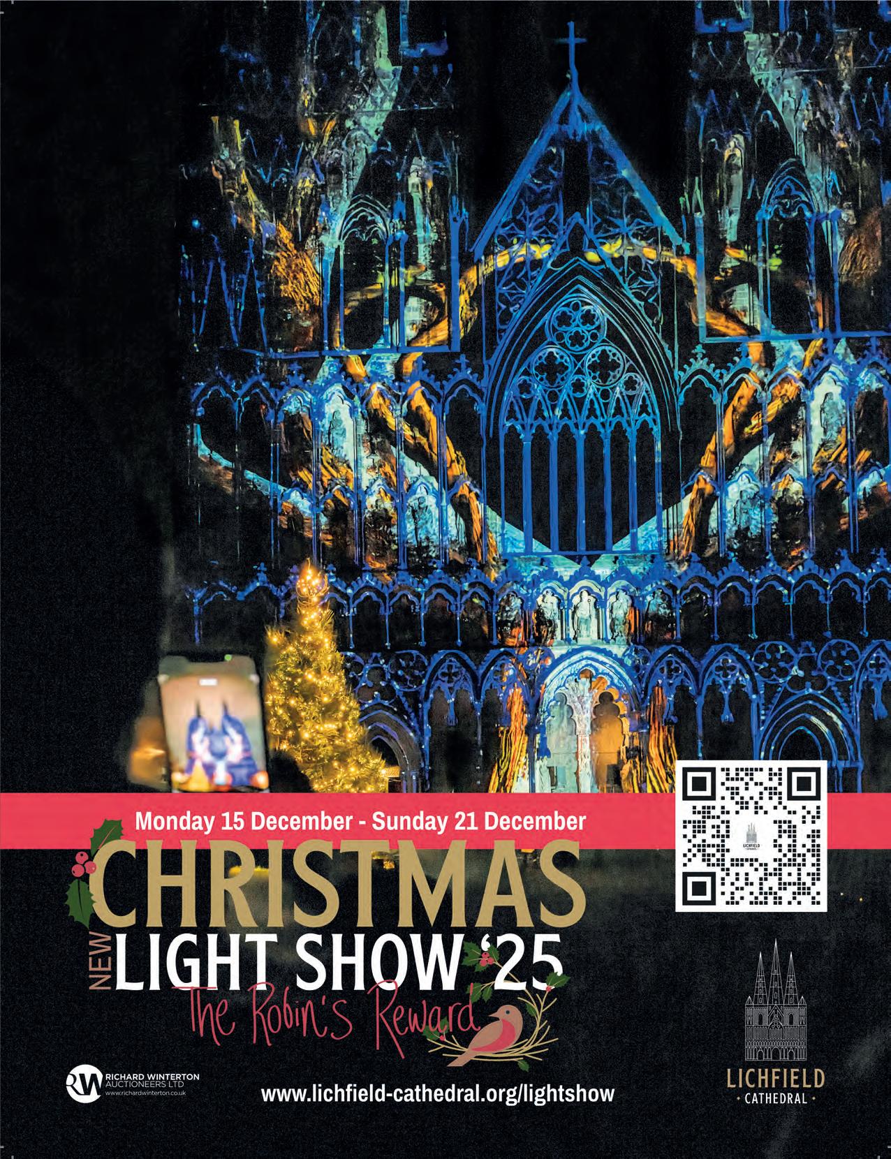 CHRISTMAS LIGHT SHOW: THE ROBIN’S REWARD Enjoy a spectacular light show around the close and on the front of the cathedral, Mon 15 - Sun 21 Dec, Lichfield Cathedral