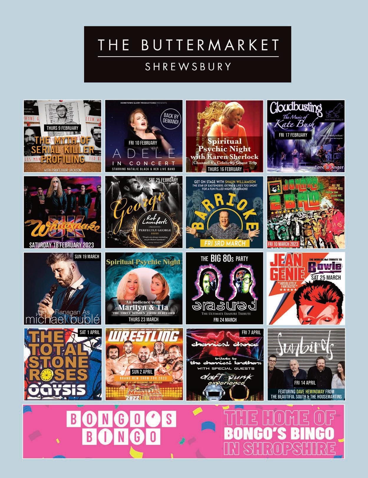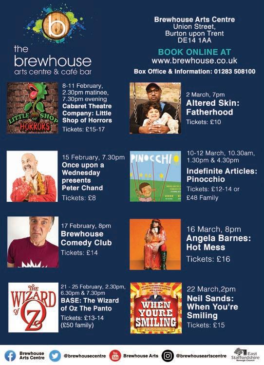 Managing Director: Davina Evans davina@whatsonlive.co.uk 01743 281708 Sales & Marketing: Chris Horton chris@whatsonlive.co.uk 01743 281704 Editorial: Lauren Foster lauren@whatsonlive.co.uk 01743 281707 : Brian O’Faolain brian@whatsonlive.co.uk 01743 281701 : Abi Whitehouse abi@whatsonlive.co.uk Subscriptions: subscriptions@whatsonlive.co.uk 01743 281714 Contributors: Graham Bostock, Katherine Ewing, Diane Parkes, Patsy Moss, Steve Adams, Steve Taylor, Sue Hull, Reggie White, Sue Jones Publisher and CEO: Martin Monahan Accounts Administrator: Julia Perry julia@21stcd.com 01743 281717 This publication is printed on paper from a sustainable source and is produced without the use of elemental chlorine. We endorse the recycling of our magazine and would encourage you to pass it on to others to read when you have finished with it. All works appearing in this publication are copyright. It is to be assumed that the copyright for material rests with the magazine unless otherwise stated. No part of this publication may be reproduced, or stored in an electronic system, transmitted in any form or by any means, electronic, mechanical, photocopied, recording or otherwise, without the prior knowledge and consent of the publishers. What’sOn February 2023 CONTENTS MEDIA GROUP What’sOn whatsonshropshire staffordshirewhatson whatsonwolverhampton Follow us at: @whatsonshrops @whatsonstaffs @whatsonwolves @whatsonshropshire @whatsonstaffs @whatsonwolves 04 07 10 17 19 23 41 43 49 24 34 36 INSIDE: First Word 4 Theatre 24 Dance 36 Film 40 Visual Arts 42 Gigs 17 Events 45 Comedy 19 Food 13
