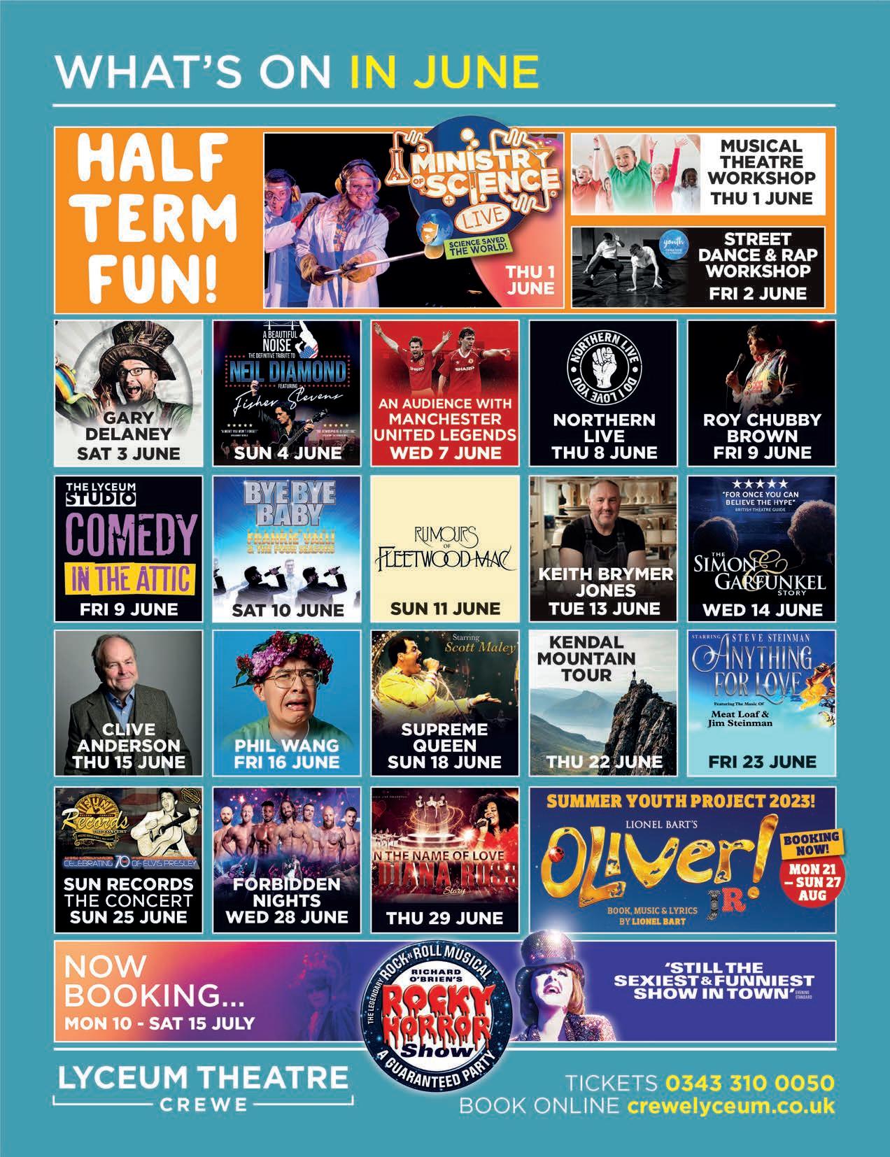 Managing Director: Davina Evans davina@whatsonlive.co.uk 01743 281708 Sales & Marketing: Chris Horton chris@whatsonlive.co.uk 01743 281704 Editorial: Lauren Foster lauren@whatsonlive.co.uk 01743 281707 : Brian O’Faolain brian@whatsonlive.co.uk 01743 281701 : Abi Whitehouse abi@whatsonlive.co.uk Subscriptions: subscriptions@whatsonlive.co.uk 01743 281714 Contributors: Graham Bostock, Katherine Ewing, Diane Parkes, Patsy Moss, Steve Adams, Steve Taylor, Sue Hull, Reggie White, Sue Jones Publisher and CEO: Martin Monahan Accounts Administrator: Julia Perry julia@21stcd.com 01743 281717 This publication is printed on paper from a sustainable source and is produced without the use of elemental chlorine. We endorse the recycling of our magazine and would encourage you to pass it on to others to read when you have finished with it. All works appearing in this publication are copyright. It is to be assumed that the copyright for material rests with the magazine unless otherwise stated. No part of this publication may be reproduced, or stored in an electronic system, transmitted in any form or by any means, electronic, mechanical, photocopied, recording or otherwise, without the prior knowledge and consent of the publishers. What’sOn June 2023 CONTENTS MEDIA GROUP What’sOn whatsonshropshire staffordshirewhatson whatsonwolverhampton Follow us at: @whatsonshrops @whatsonstaffs @whatsonwolves @whatsonshropshire @whatsonstaffs @whatsonwolves 05 08 11 14 41 42 47 17 22 24 32 39 INSIDE: First Word 4 Theatre 24 Dance 39 Film 40 Visual Arts 42 Gigs 17 Events 45 Comedy 19 Food 11 Festivals 20