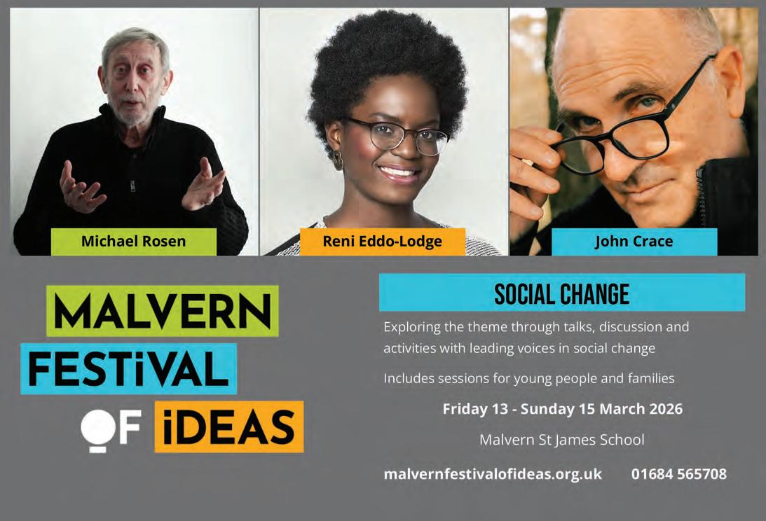 Malvern Festival Of Ideas makes a welcome return next month, taking place at Malvern St James School from Friday 13 to Sunday 15 March. This year’s event will explore the theme of ‘social change’, presenting a programme featuring 16 speakers and a dedicated series of family and schools’ sessions. Contributors include children’s author Michael Rosen, Jeanette Winterson, John Crace & Will Hughes. Wildlife biologist Lucy Eckersley, journalist Adele Zeynep and geographer Danny Dorling also feature. For the full line-up and to purchase tickets, visit malvernfestivalofideas.org.uk