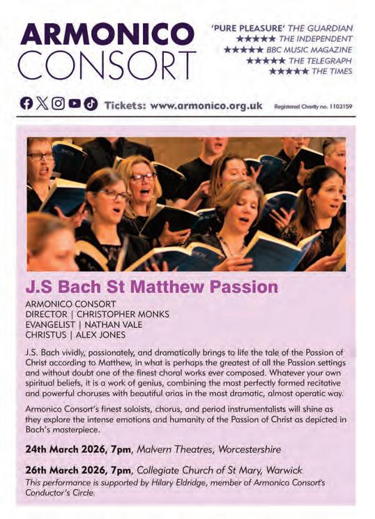 Performing the work at Malvern Theatres on Tuesday 24 March, they then appear at Warwick’s Collegiate Church of St Mary two nights later (Thursday the 26th)... To find out more and book a ticket, visit the website at armonico.org.uk