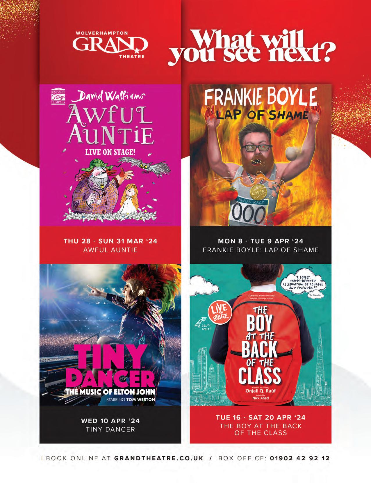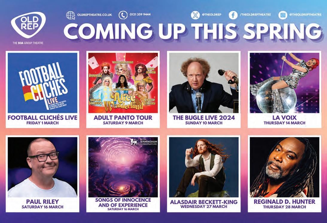 others to read when you have finished with it. All works appearing in this publication are copyright. It is to be assumed that the copyright for material rests with the magazine unless otherwise stated. No part of this publication may be reproduced, or stored in an electronic system, transmitted in any form or by any means, electronic, mechanical, photocopied, recording or otherwise, without the prior knowledge and consent of the publishers. What’s On March 2024 CONTENTS MEDIA GROUP What’s On Follow us at: whatsonwarwickshire whatsonworcestershire @whatsonwarwicks @whatsonworcs @whatsonwarwicks @whatsonworcs 04 10 15 16 39 40 45 21 22 31 33 34 INSIDE: First Word 4 Theatre 22 Dance 33 Film 34 Visual Arts 38 Gigs 15 Events 43 Comedy 19