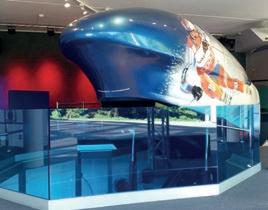 New Ski Simulator in Holmenkollen. It is a Movie-Ride Theatre. Experience Downhill Skiing at 130 km/ hour – and Ski-jumping at 100 km/hour. Ski Simulator next to the Holmenkollen ski jump! Jump in “Kollen” and find out what it feels like to head down the world’s toughest downhill ski slopes alongside the world’s best performers on two skis. Technology which used to be available only to pilots and astronauts combines flight simulator movements with an “eye-view” movie to create a unique and realistic feel. Once inside the the Ski Simulator you will get the “ride of your life”, when the skiing starts. Up to 12 people can sit inside at the same time and the whole ride lasts about 5 minutes. “Amazing ride, amazing experience. It made me realize how crazy you have to be to go skiing at 130 km/h and how dangerous it is”.