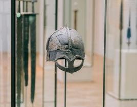 Our exhibition contains some of the most exquisite objects that have been found in Norway from the Viking Age. Become acquainted with Viking war culture and their journeys, and how society changed during the Viking era. The Vikings are known as being violent and ruthless warriors. However, they were also farmers, skilled craftsmen and traders. On display at the VÍKINGR exhibition you will find familiar and exquisite artefacts representing different aspects of life, death and society – such as a rare helmet and ornate swords.