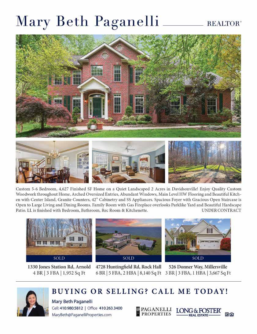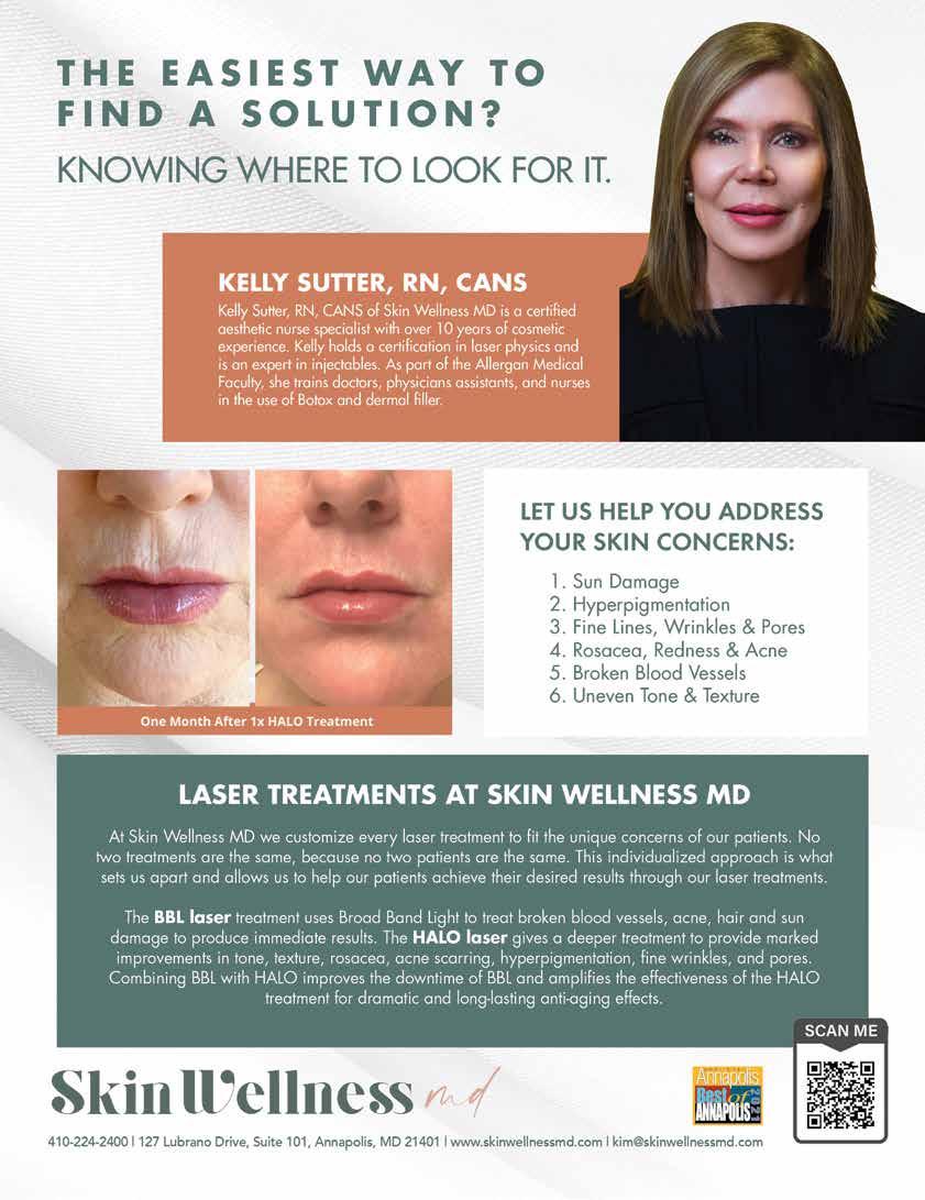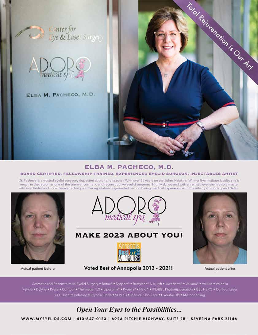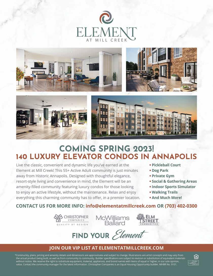 84 Lumber—Kitchen & Bath Design Studio 125 Academy Realty, Inc LREHP Adrian Development LREHP Alternative Pet Care 30, 132 Annapolis Marine Art Gallery 141 Annapolis Opera 132 Annapolis Painting Services 23, 31 Annapolis Plastic Surgery 5 Annapolis Symphony 30 Anne Arundel Gastroenterology Associates 131 Archbishop Spalding High School 26 Ballet Theater of Maryland 135 Baltimore Washington Medical Center IBC Baypoint Wealth Management 51 Baywoods of Annapolis 119 Beechnut Kennels 143 Bella Italia 143 Betsie Russell—Coldwell Banker Realty LREHP Boatyard Bar & Grill 136 Bosom Buddies Charities 91 Breakfast Club Academy 97 Cabinet Discounters BC Capital SUP 96 Carpaccio Tuscan Kitchen & Wine Bar 26 Carrol's Creek Cafe 136 Catherine Purple Cherry Architects 46 Center for Eye & Laser Surgery/Adoro Medical Spa 17 Chesapeake Ballet Company 141 Chesapeake Car Wash 20 Chesapeake Financial Planning & Tax Services 53 Christina Palmer 44, LREHP Christopher Companies—Element at Mill Creek 14 Christy Bishop—Berkshire Hathaway LREHP Ciminelli's Landscape Services, Inc 118 Coldwell Banker Church Circle 54, LREHP David Orso LREHP David's Natural Market 131 Diane and Crew of Taylor Properties LREHP Djawdan Center for Implant and Restorative Dentistry 1 Drs. Walzer, Sullivan & Hlousek, P.A. 7 Ehmann, Kathryn DDS 24 Erica Baker—TTRSIR Real Estate Agent LREHP Erickson Senior Living 31 Fichtner Home Exteriors 113 GiGi's Playhouse 34 Hague Quality Water of Maryland 53 Harvest Thyme Modern Kitchen & Tavern 135 Homestead Gardens 112 Hospice of the Chesapeake 90 Indian Creek School (Upper Campus) 41 Joanna Dalton—Coldwell Banker LREHP Klein & Associates, LLC LREHP Lewnes' Steakhouse 139 Liff, Walsh & Simmons Eagle Title 56, LREHP Long & Foster—Mr. Waterfront Team LREHP Long & Foster Annapolis Fine Homes 8, LREHP Long Fence 122 Lori Gough—Long & Foster LREHP Luminis Health AAMC 2 Lundberg Builders and 314 Design Studio 51 Mary Beth Paganelli—Long & Foster 48, LREHP Maryland Hall 132 Maryland Paint & Decorating 40 Maryland Therapeutic Riding 36 Mi Lindo Cancun Grill 139 Miss Shirley's Cafe 136 Mobile Pet Vet 30 Mueller Homes 49 Murthy Facial Plastic Surgery 25 Nancy Hammond Editions 119 National Carpet & Flooring 117 Nielsen Development Group 100, LREHP Northrop Realty—A Long & Foster Company 102 O’Donnell Vein and Laser IFC On The Green Inc 125 One Day Doors & Closets of Baltimore 116 Pacesetters Annapolis 142 Paradise Float Spa 143 Plastic Surgery Specialists 19 ProMD Health 126 Rams Head on Stage 37 Rodizio Grill 136 S & K Roofing Siding Windows 118 Saint John the Evangelist Catholic School 97 Sandel Duggal Center For Plastic Surgery 3 Scarborough Capital Management 43 Scott Finlay DDS & Associates 13 Scott Schuetter 10, LREHP Severn School 96 Simply Stronger 143 Skin Wellness MD 6 Stahley Thompson Homes LREHP The Arc Central Chesapeake Region 29 The Jaklitsch Law Group 4 The Shane Hall Group of Compass Realty LREHP The Tower Team—TTR Sotheby's LREHP The Wellness House 39 Total Home Performance 27 Travis Gray—Engel & Volkers LREHP Tribe Cycle 142 TTR Sotheby’s Annapolis—Brad Kappel 15, LREHP Vaneska Adams with eXp Realty LREHP Watershed Title 84, LREHP Werrlein Services LREHP Wimsey Cove Framing & Fine Art Framing 142