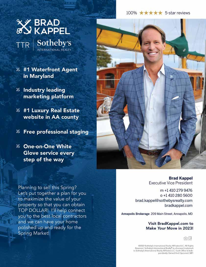 Acts Retirement Life Communities, Inc 2 Anne Arundel Gastroenterology Associates 19 BJ and Son Property Management 63 Bosom Buddies Charities 10 Chaney Homes—Tricia Wilson LREHP Chesapeake Crawl Space Solutions 63 Dee Dee McCracken—Coldwell Banker LREHP, BC Djawdan Center for Implant and Restorative Dentistry 1 Drs. Walzer, Sullivan & Hlousek, P.A. 7 Dwelling and Design 20 For All Seasons, Inc. 19 Friel Lumber Company/Friel Kitchen & Bath Design 48 Gary Smith Builders 25 Haven Ministries 13 Higgins & Spencer Inc. 25 Jason's Computer Services 36 Joanna Dalton—Coldwell Banker LREHP Kent Island Pediatric Dentistry 13 Londonderry On The Tred Avon 23 Long and Foster Real Estate—Cornelia Heckenbach LREHP Long Fence 59 Luminis Health AAMC 3 Lundberg Builders and 314 Design Studio 26 Nancy Hammond Editions 26 O’Donnell Vein and Laser IFC Paquin Design/Build 58 Plastic Surgery Specialists 4 The Arc Central Chesapeake Region 15 Total Home Performance 62 TTR Sotheby's—Laura Carney LREHP TTR Sotheby’s Annapolis—Brad Kappel LREHP University of Maryland Shore Regional Health IBC W.L. Staton 48