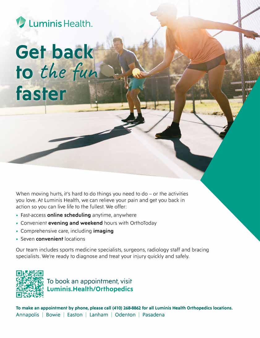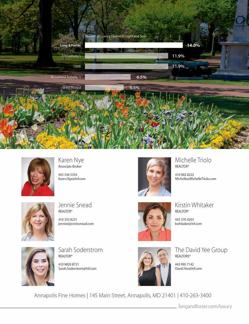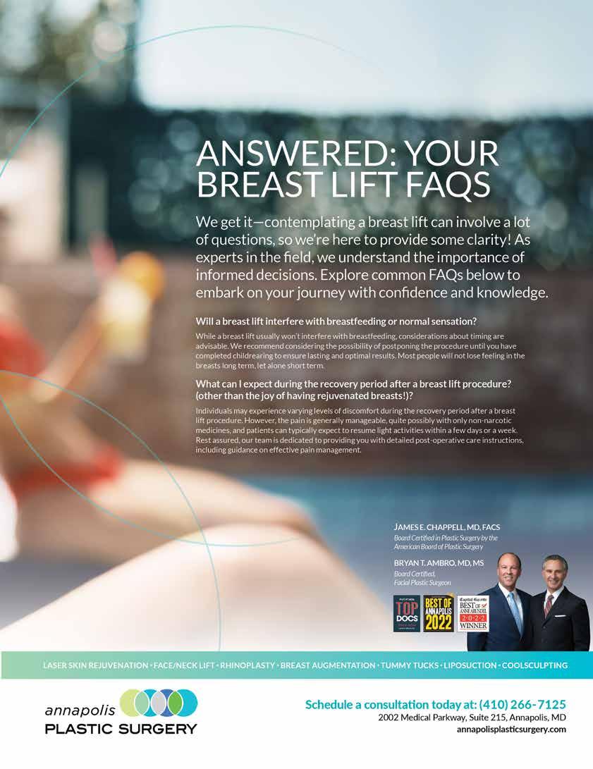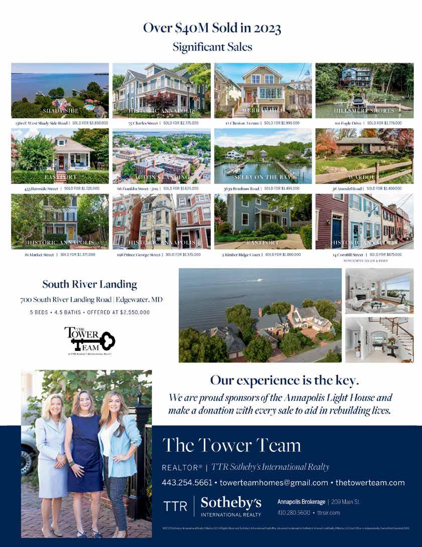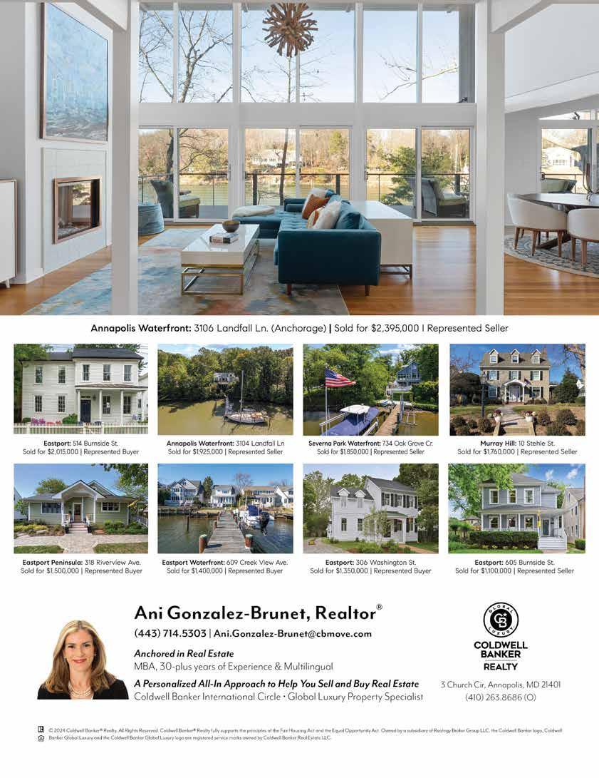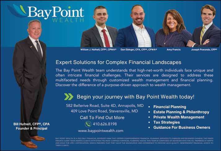 What’s Up? Annapolis is published by What’s Up? Media 201 Defense Highway, Suite 203, Annapolis, MD 21401, 410-266-6287. Fax: 410-224-4308. No part of this magazine may be reproduced in any form without express written consent of the publisher. Publisher disclaims any and all responsibility for omissions and errors. All rights reserved. Total printed circulation is 46,072 copies with an estimated readership of 164,550. ©2024 What’s Up? Media. Home Grown, Locally Owned: This issue of What’s Up? Annapolis employs more than 25 local residents.