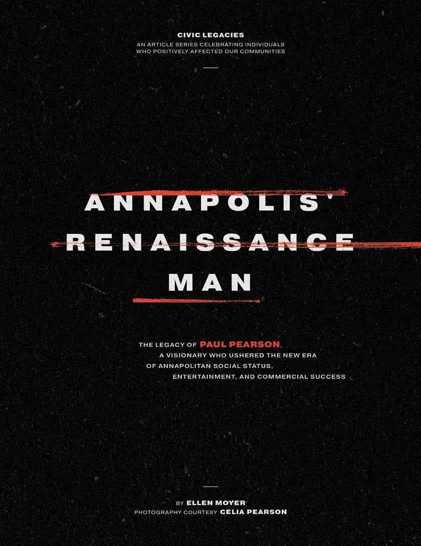 56 Annapolis’ Renaissance Man profiles iconic entrepreneur, developer, and entertainment guru Paul Pearson in the first of several articles for a new series titled “Civic Legacies” by ellen moyer