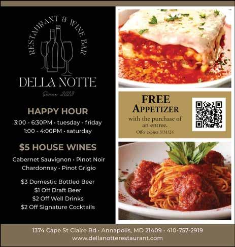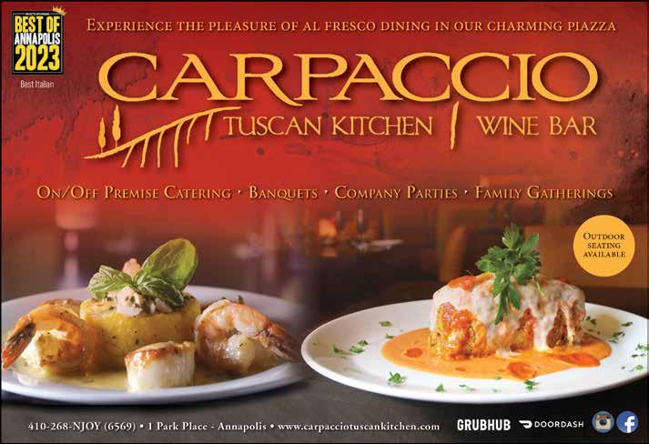 whatsupmag.com March 2024 What’s Up? Annapolis 139 WATERFRONT BANQUET SPACE AMPLE ON-SITE PARKING WATER TAXI STOP HAPPY HOUR 410 Severn Avenue Eastport 410.263.8102 carrolscreek.com 100% Come taste for yourself why Carrol’s Creek Cafe is a multiple Best of Annapolis 2023 winner! Thanks for choosing us Best. Best. Best. Best Cream of Crab Soup Best Seafood Restaurant Best Waterfront Restaurant Join us for Restaurant Week! February 24th –March 3rd
