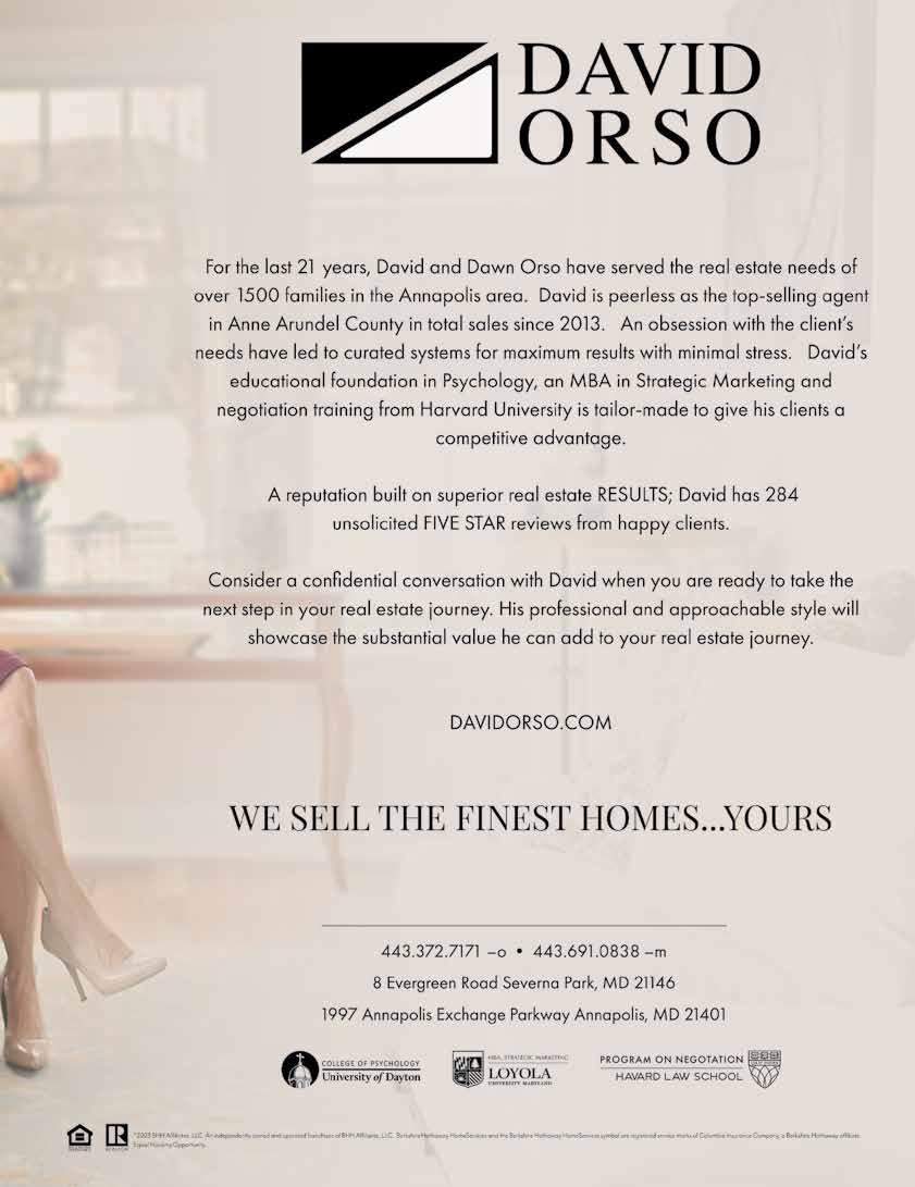 Carrying the home theme, this issue of What’s Up? Annapolis offers some ways and means to help you achieve great expectations of your own home and feel community pride. Throughout this magazine, you’ll meet home professionals—some of the very best locally—that have helped thousands of clients (perhaps, your neighbors) with their real estate, architectural, construction, interior design, plumbing, electric, HVAC, you name it…wants and needs. And our 2024 Home Resource Guide lists them all neatly for reference.