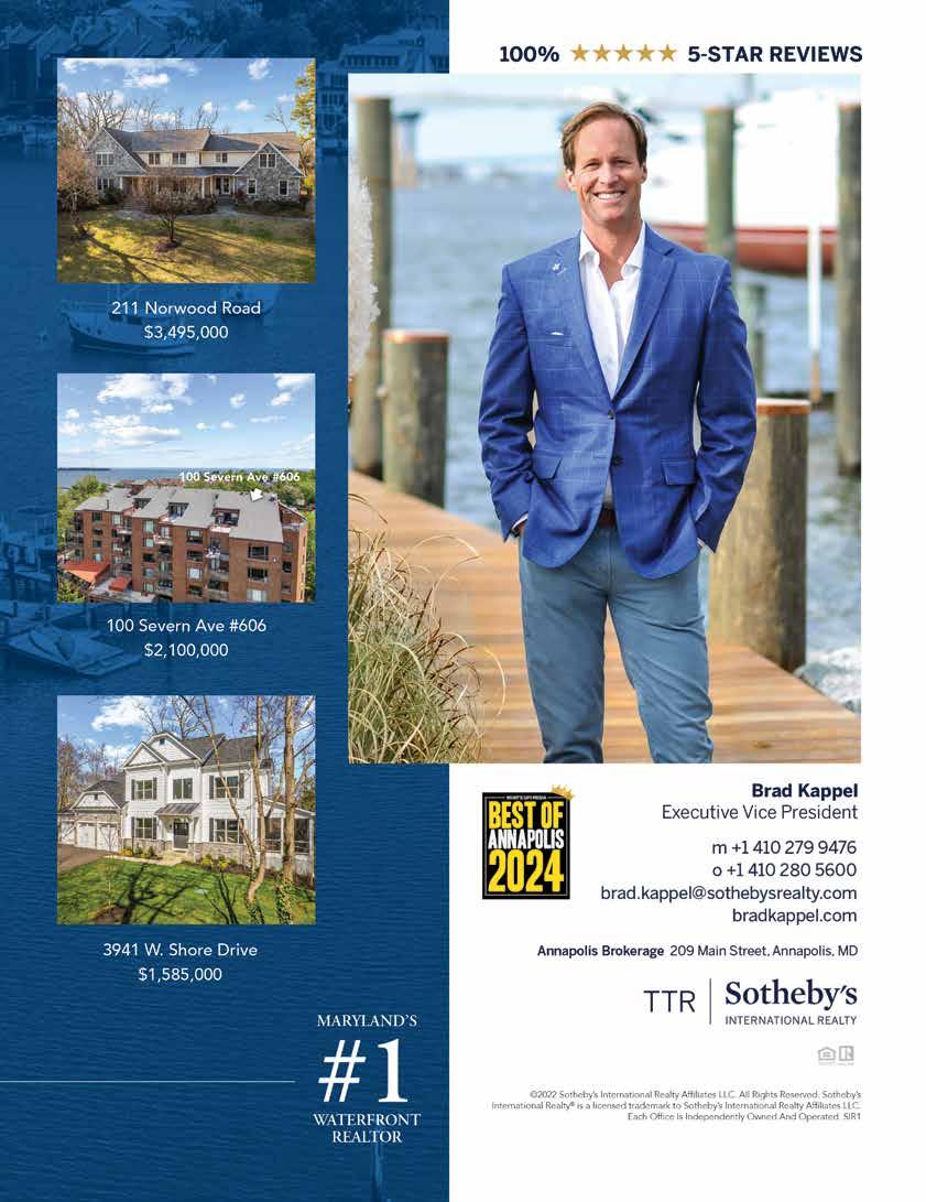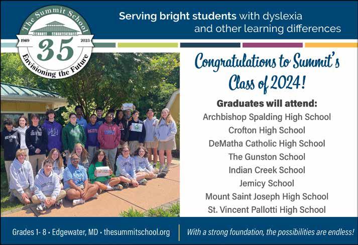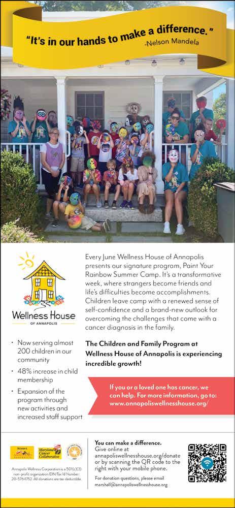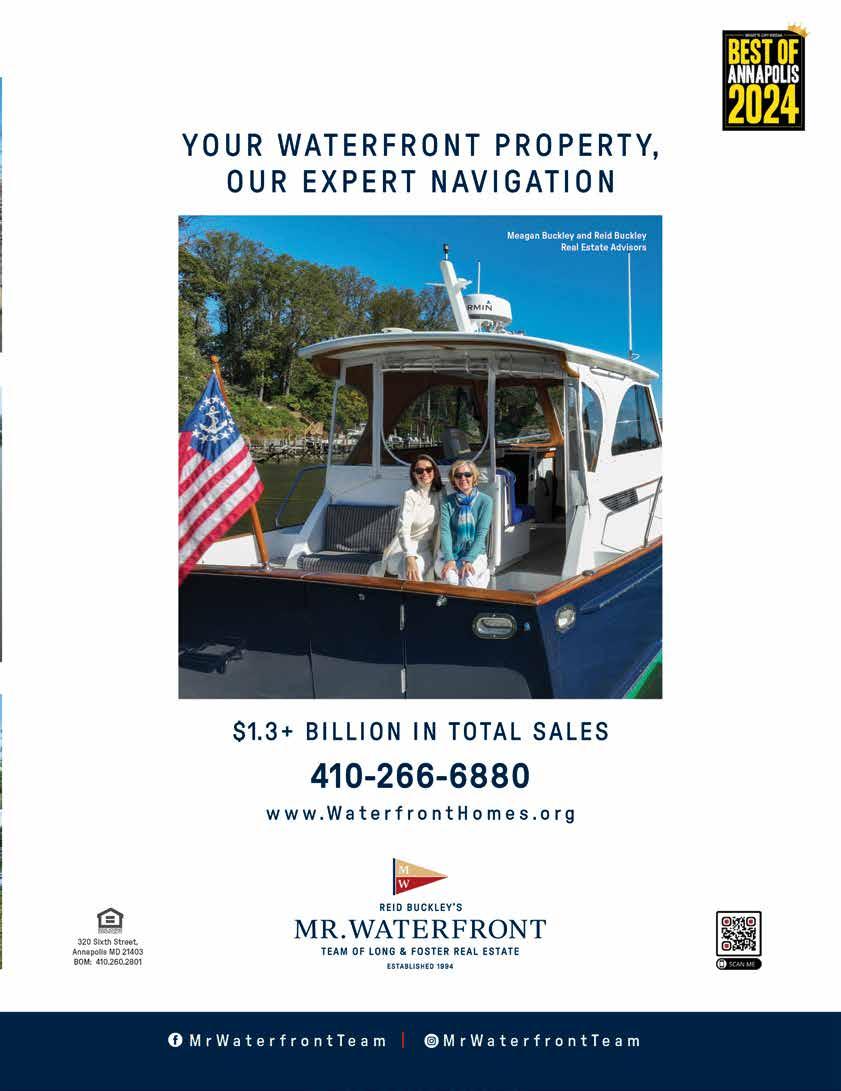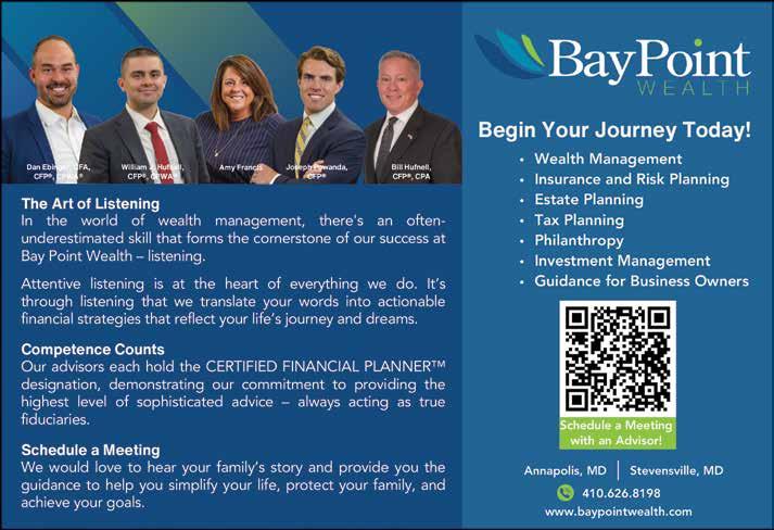 What’s Up? Annapolis is published by What’s Up? Media 201 Defense Highway, Suite 203, Annapolis, MD 21401, 410-266-6287. Fax: 410-224-4308. No part of this magazine may be reproduced in any form without express written consent of the publisher. Publisher disclaims any and all responsibility for omissions and errors. All rights reserved. Total printed circulation is 46,072 copies with an estimated readership of 164,550. ©2024 What’s Up? Media. Home Grown, Locally Owned: This issue of What’s Up? Annapolis employs more than 25 local residents.