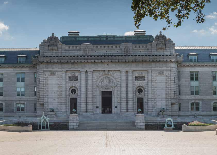 Sampson, Mahan, and Carter Halls are the inter-connected academic buildings designed by architect Ernest Flagg and constructed in 1907. The complex is home to the Naval Academy’s School of Humanities and Social Sciences. Sampson Hall, named for 13th Superintendent Rear Adm. William T. Sampson, is where English and history courses are taught. Mahan Hall, named for naval historian Rear Adm. Alfred Thayer Mahan, housed the library until 1973. The main level has an auditorium that is used for a wide variety of campus events, including performances by midshipman activity groups such as the Masqueraders. Carter Hall is named for 1947 USNA graduate, 39th President of the United States, and Nobel Peace Prize laureate Jimmy Carter. Carter Hall houses the Political Science and Languages & Cultures Departments.