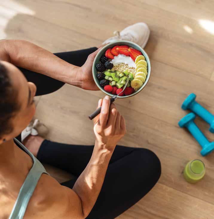 Refined carbs and sugary foods cause spikes and crashes in blood sugar. When our blood sugar isn’t stable, we feel irritable or fatigued. If we eat a balanced meal with protein, complex carbohydrates (including fiber), and healthy fats, we have stable blood sugar levels, which ensures a steadier source of energy.