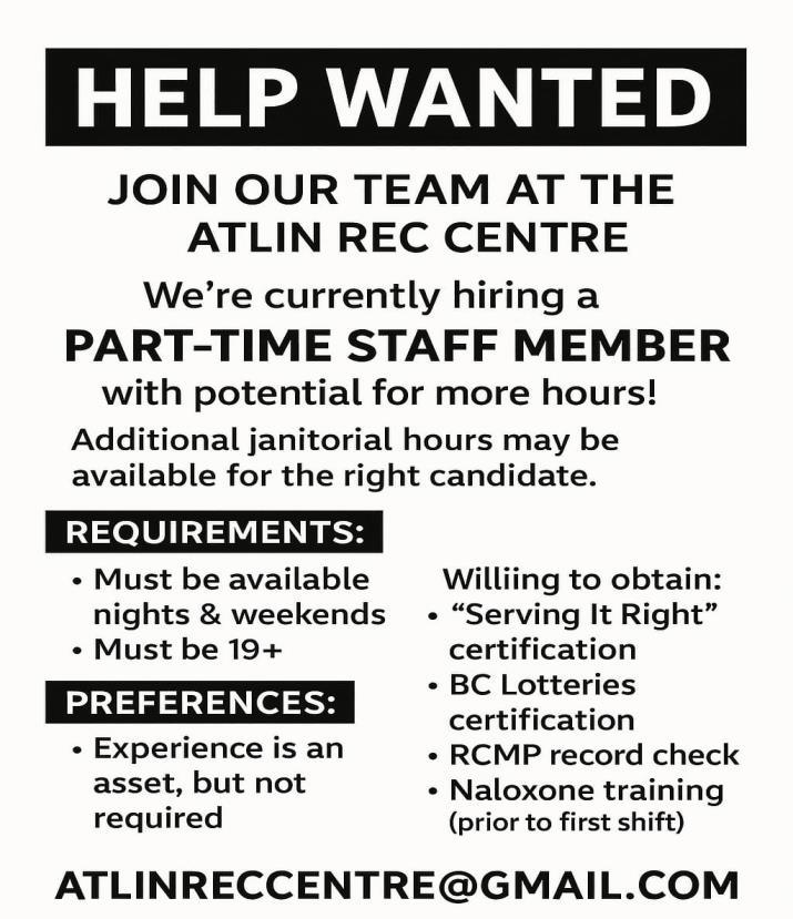 For further information, please contact Ms. Edel Paracuelles, Atlin School Principal, at (250) 651-7525.