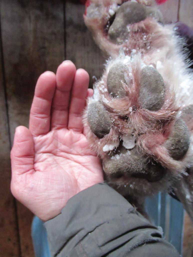 Our small rucksack-fitting dachshund-cross, we intuit, knows that he’s rather puny in size and therefore sticks close to us. Alas, once he smells wolf and he’s not leashed on our near-daily onehour walk, he’ll pick up his stubby, crooked legs and hightail it for home. This happened last April, the last day out here before being picked up by plane.