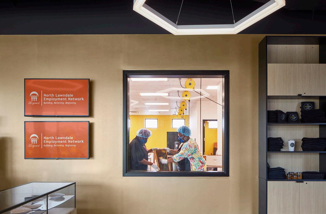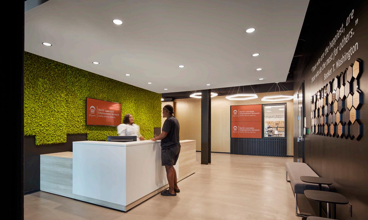 The North Lawndale Employment Network supports residents returning from incarceration and others who face the day-to-day financial hardships of poverty with pathways to economic prosperity. When a former bank building in the Lawndale neighborhood became available, the nonprofit organization seized the opportunity to relocate all of their programs under one roof and become a place of gathering and growth for the community.