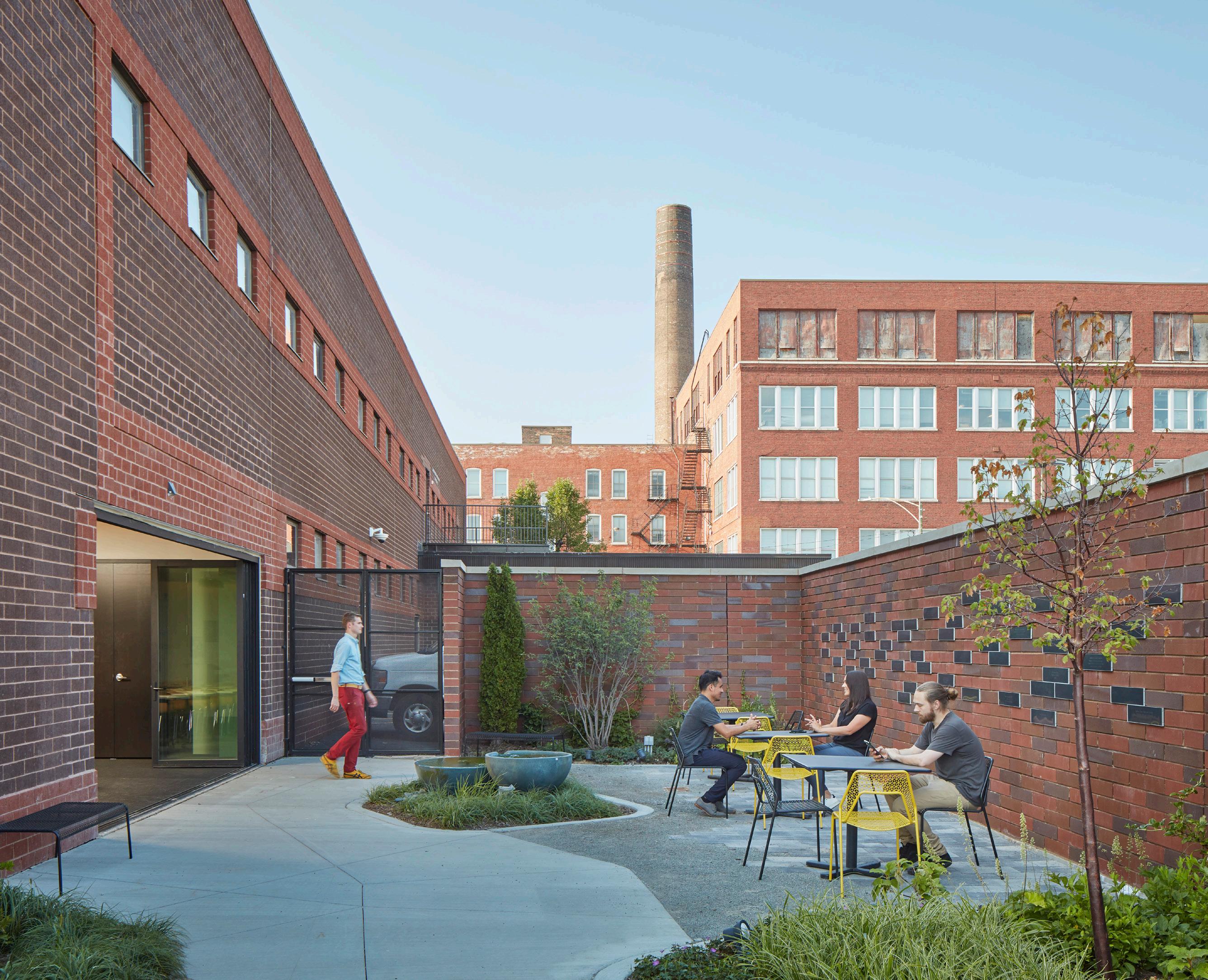 Through office-wide studio pin-ups and internal reviews, all staff members contribute ideas and feedback to every project to provide the best ideas and highest quality work. This philosophy offers a wider spectrum of possibility and has led to unanticipated solutions, like transforming a shuttered lumberyard into an innovative 21st-century school. Or discovering that the 70-foot tower of an abandoned food-manufacturing plant can be a viable and exciting gallery and performance space. Our approach ensures that the best ideas will be explored for each unique project.