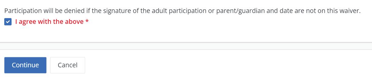 Step 6: Complete waiver form by checking on the waiver agreement box and select “Continue”.