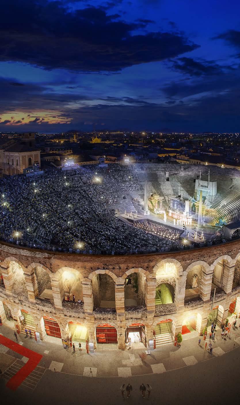 − Symbol of the city of Verona and the third largest Roman amphitheater in Italy, after those of Rome (the Colosseum) and Capua, the Arena of Verona was built around the middle of the first century AD to host gladiator fights, naval battles or shows with exotic animals.