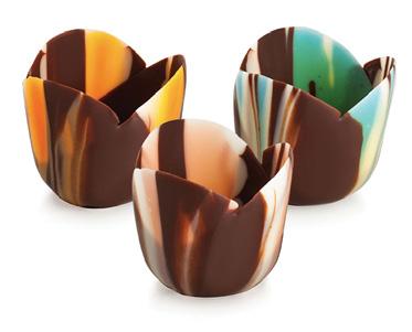 • Melt chocolate couvertures (dark and milk) at 45°C and white couverture at 40°C.