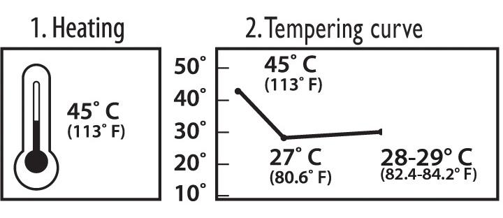 4. To obtain a harder structure and the best sheen after enrobing or molding, the product should be placed in a cooling chamber or area with a temperature around 10°C (50°F) directly after use.