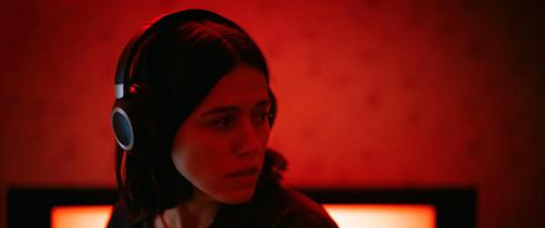 None of this is to say that Undertone, by first-time director Ian Tuason, is bad, exactly. The set-up and atmosphere it establishes in its opening frames are promising. The film centers on Evy (Nina Kiri), a 20-something podcaster taking care of her dying mother. Trapped in her childhood home, Evy’s only form of relief is through her work: a paranormal podcast in which she and her co-host Justin (the voice of Adam DiMarco) investigate “real-life” scary stories. The film’s horror kicks off when Evy and Justin begin