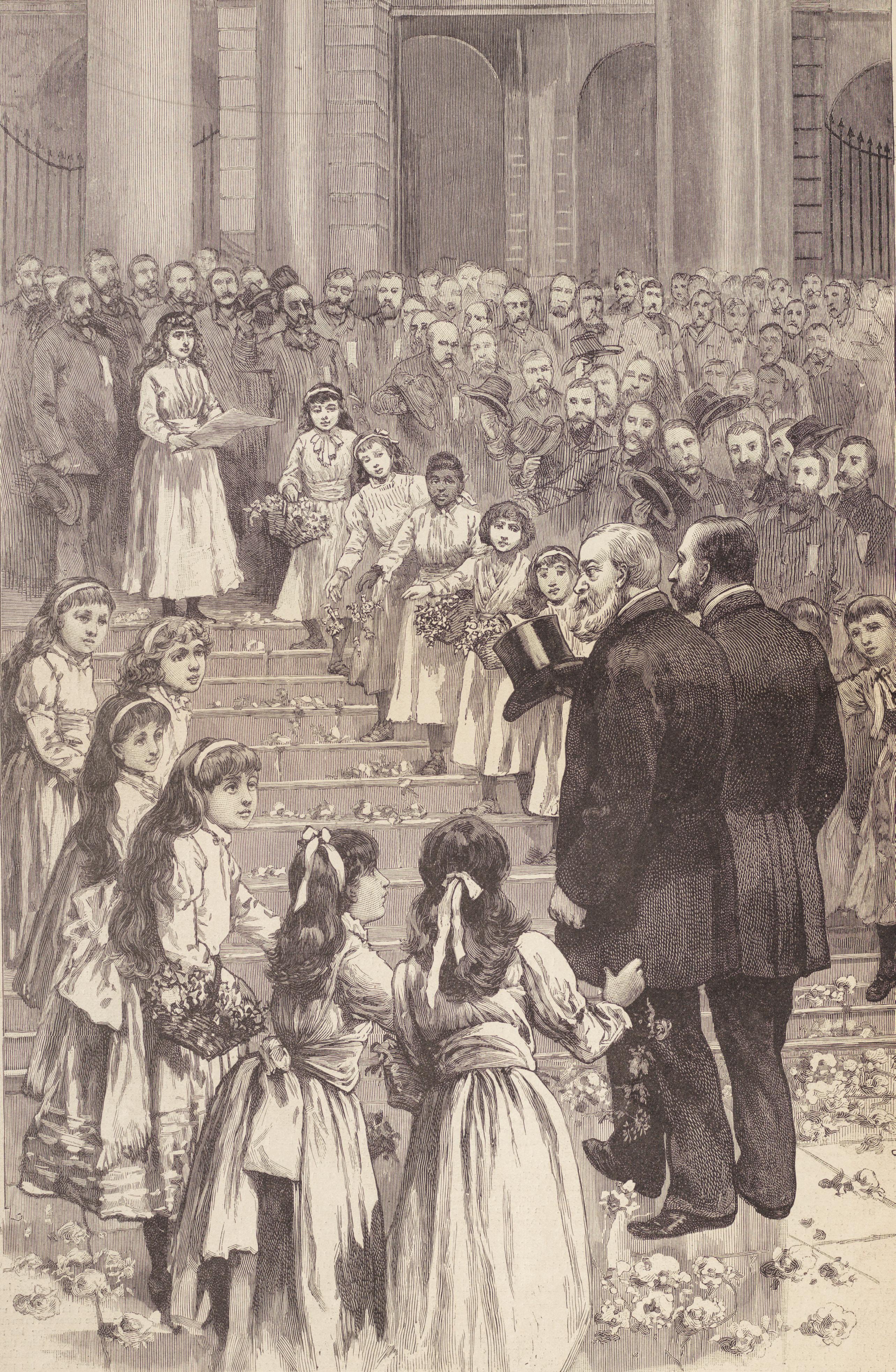 opposite Captioned A Beautiful Incident from the Centennial Celebration—Girls from the Normal College Strewing Flowers in the Path of President Harrison at the Entrance to City Hall, this illustration continued the coverage of the centennial featured in the May 11, 1889, issue of Frank Leslie’s Illustrated Newspaper.