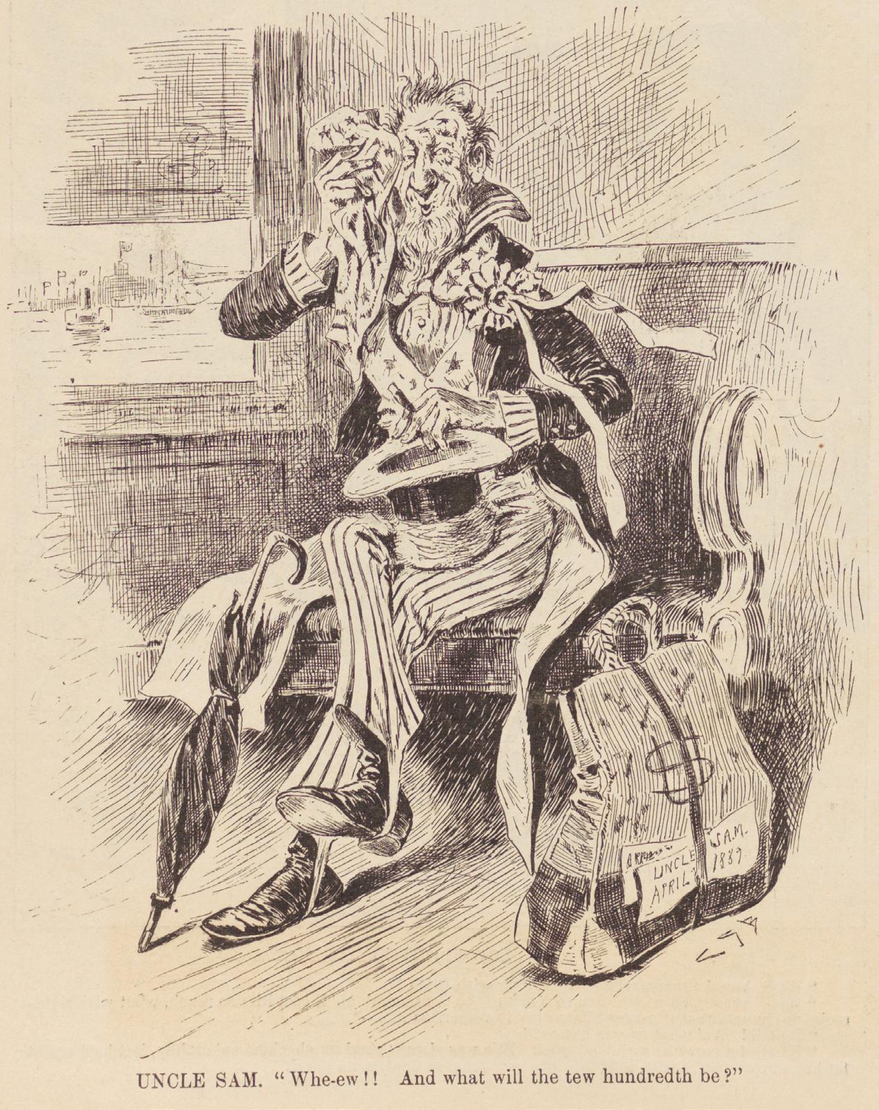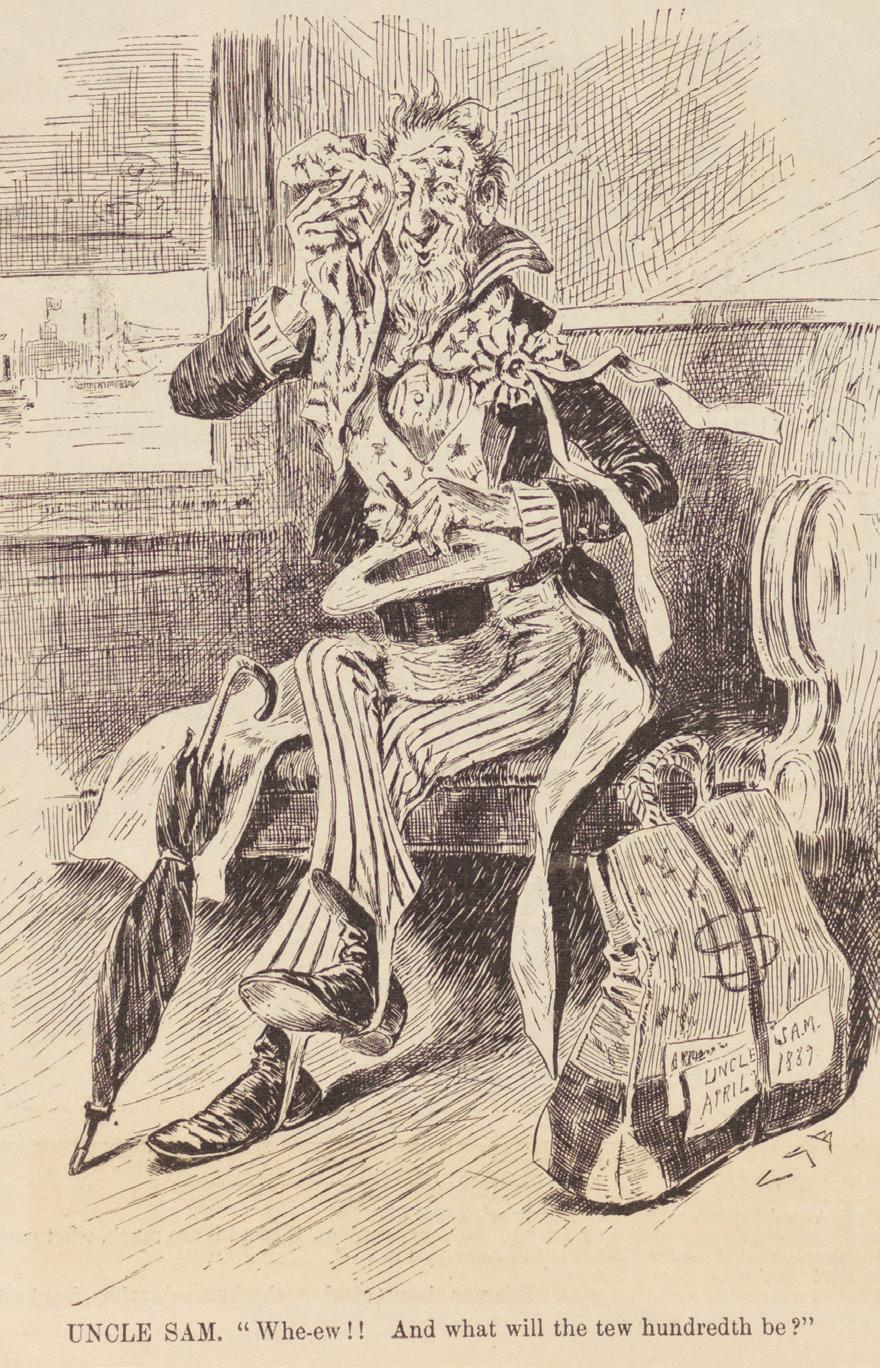A comical illustration in the May 11, 1889 issue of Harper’s Weekly featured an exhausted Uncle Sam at the conclusion of the centennial celebrations wondering how the bicentennial of George Washington’s first Inauguration might be observed in 1989. Sure enough, the milestone anniversary was celebrated in New York with speeches and parades on Wall Street.