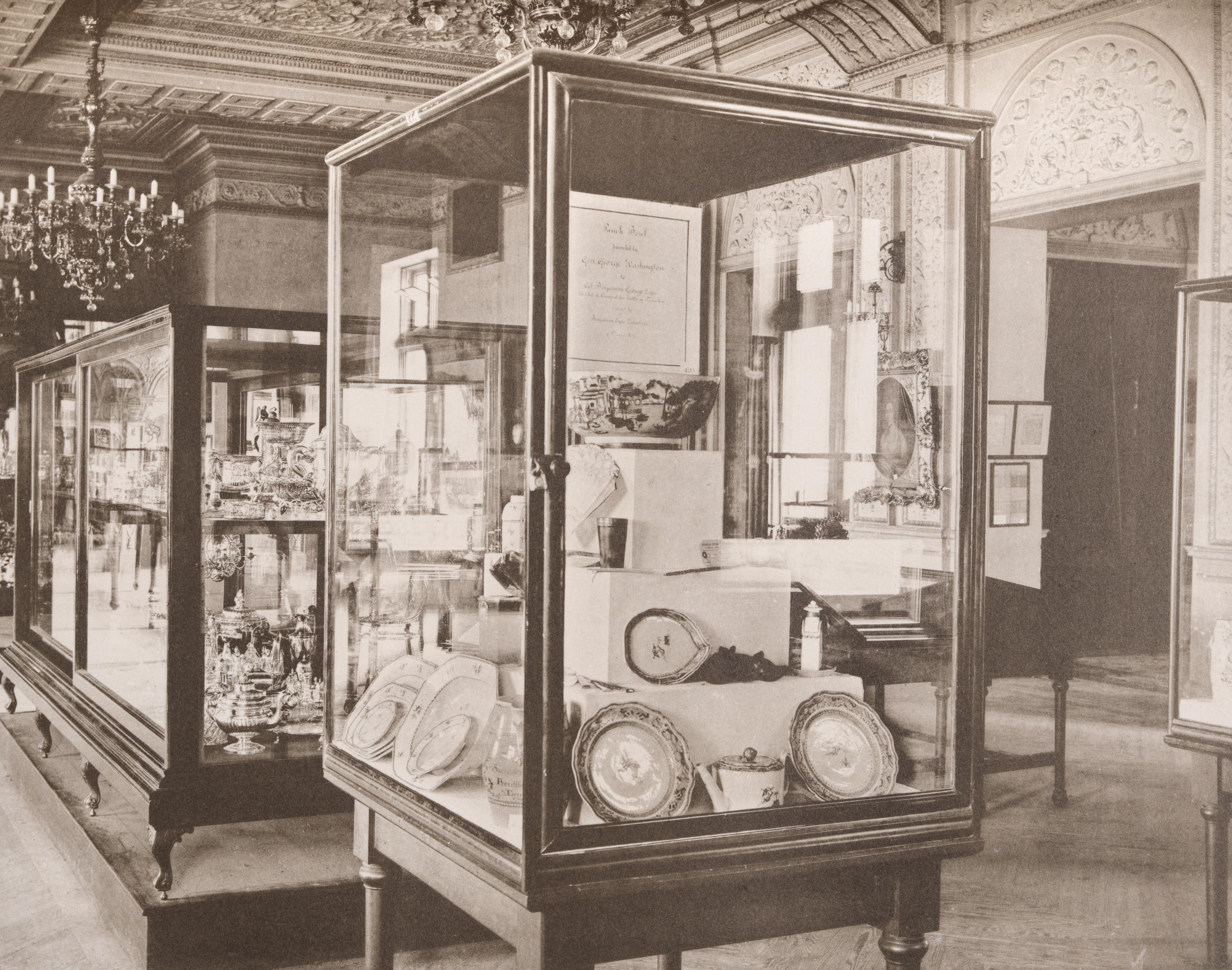The South Picture Gallery of the Loan Exhibition featured Centennial Celebration of the Inauguration of George Washington as First President of the United States, a 673 page, 49 pound, leather-bound account published in 1892. The cover of the large volume features an image of the Washington Centennial Medal designed by Augustus Saint-Gaudens. Two thousand were cast in bronze and sold at the Loan Exhibition for $2 each.