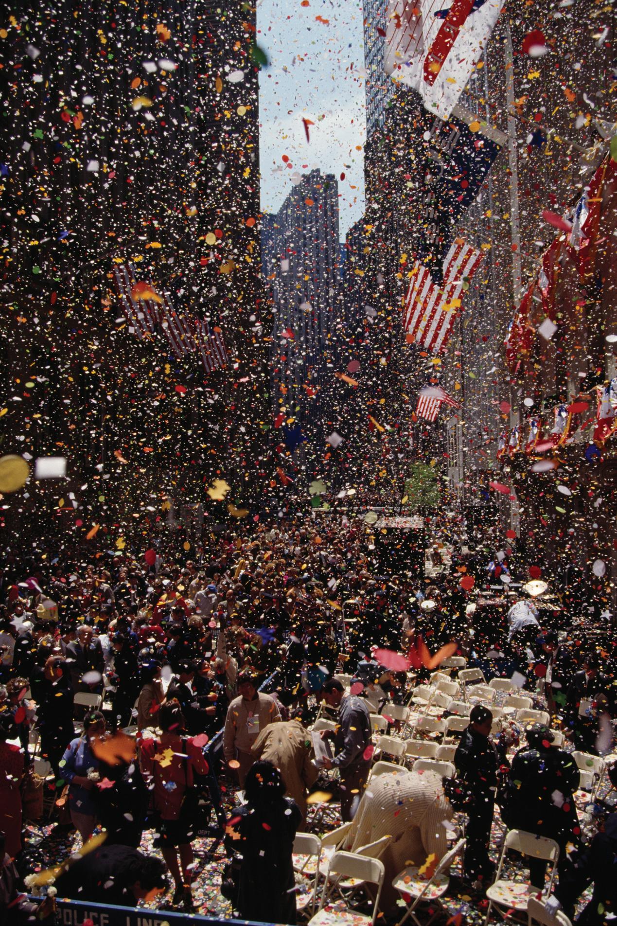 After the five-hour parade, the crowds were treated to a concert presented by two thousand singers and a fireworks display. five hour parade reviewed see