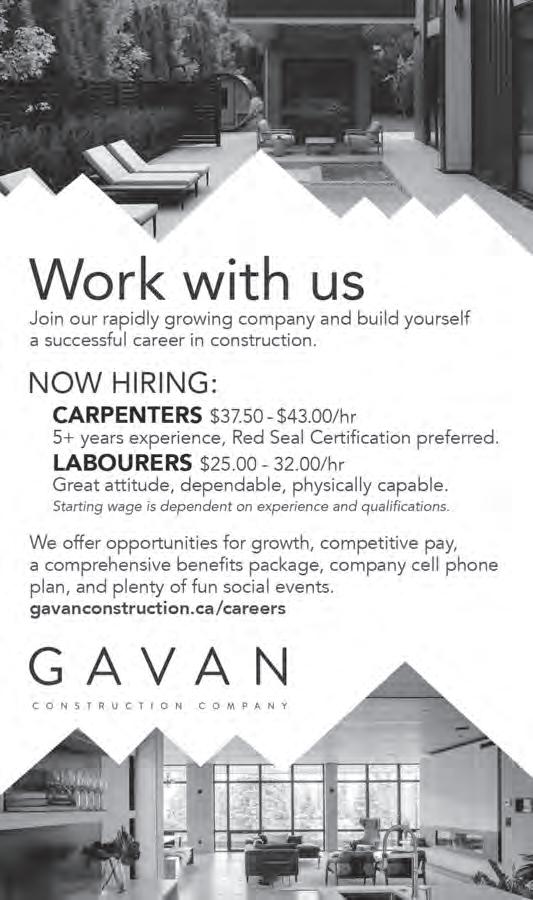 Ourteamofpeopleis whatsetsusapartfromotherbuilders.As wecontinue to growasthe leaderinluxury projectsinWhistler,ourteamneeds to expand withus. We are currentlyhiring: