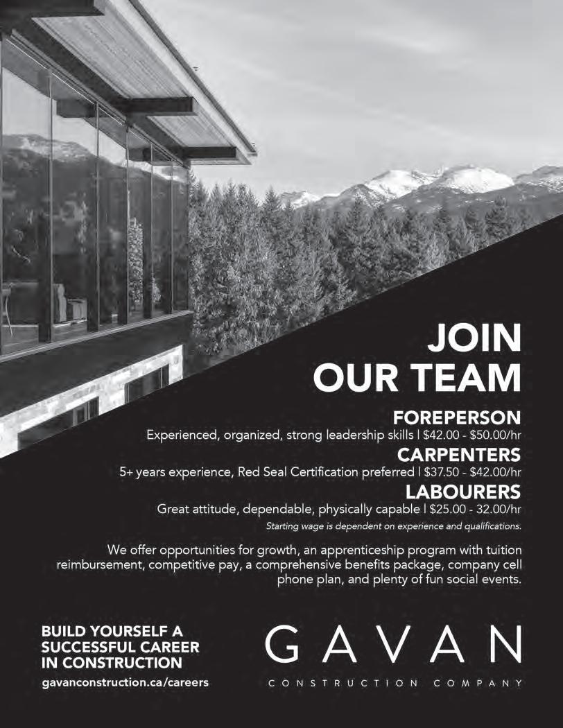 Ourteamofpeopleis whatsetsusapartfromotherbuilders.As wecontinue to growasthe leaderinluxury projectsinWhistler,ourteamneeds to expand withus. We are currentlyhiring: