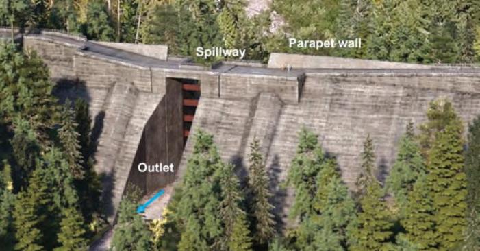 According to district staff, the debris flow barrier, to be built by the developer, will be among the largest of its type in the world. It will be located on Crown land in the SquamishLillooet Regional District in the Cheekye River near the apex of the Cheekye Fan. It will be a 24-metre-high, 200-metre-long, concrete structure with a six-metre-wide vertical slot in the middle Eight steel beams will be
