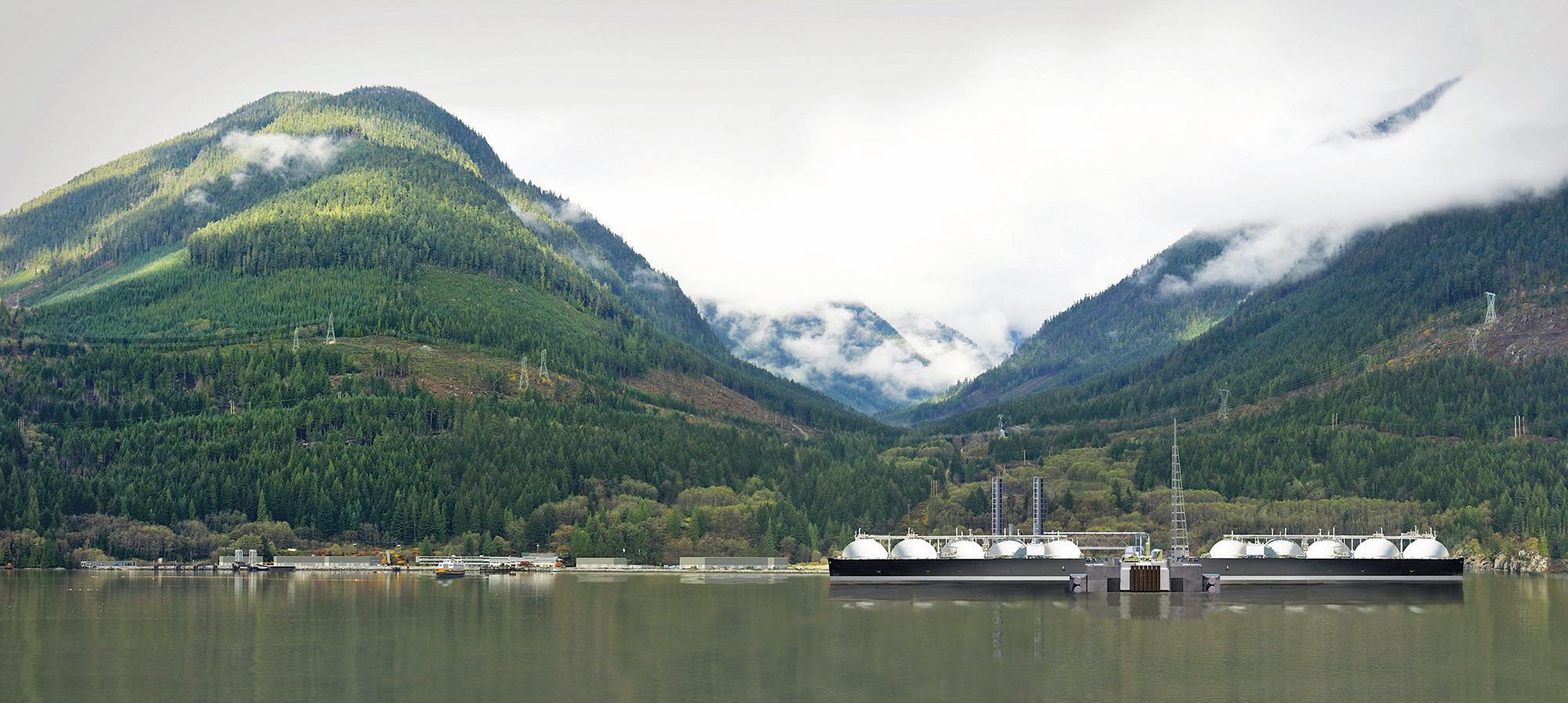 RENDERING VIA WOODFIBRE LNG Rendering of Woodfibre LNG at build out. Construction on the project has begun.