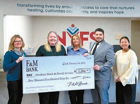 F&M Bank employees recently presented a check to Northeast Youth & Family Services (NYFS) for $3,266. In 2023, F&M Bank em ployees established the F&M Bank Employee Charitable Organization Match Program, a program in which F&M Bank employees vol untarily donate an amount of their choice with each paycheck. F&M Bank then matches the funds collected, dollar for dollar, up to $5,000. Last year, F&M Bank team members in Vad nais Heights and Lino Lakes chose Northeast Youth & Family Services, a nonprofit, commu nity b ased and trauma i nformed mental health and community services organization serving the northeastern Saint Paul suburbs since 1976.